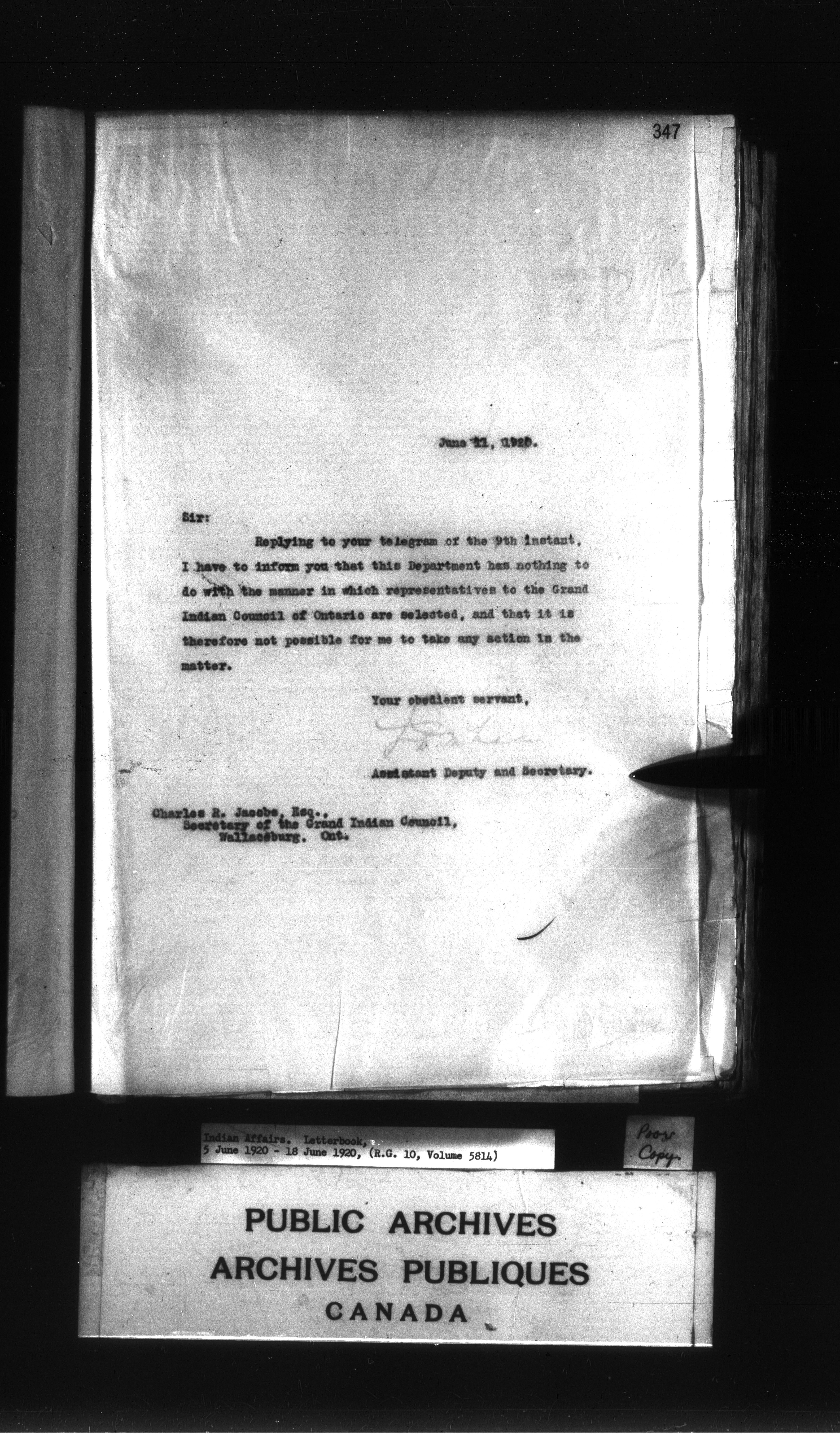 Department of Indian Affairs : Letterbooks of out-going correspondence relating to the administration of Indian Affairs in both eastern and western Canada, 1871-1920 - 8991
