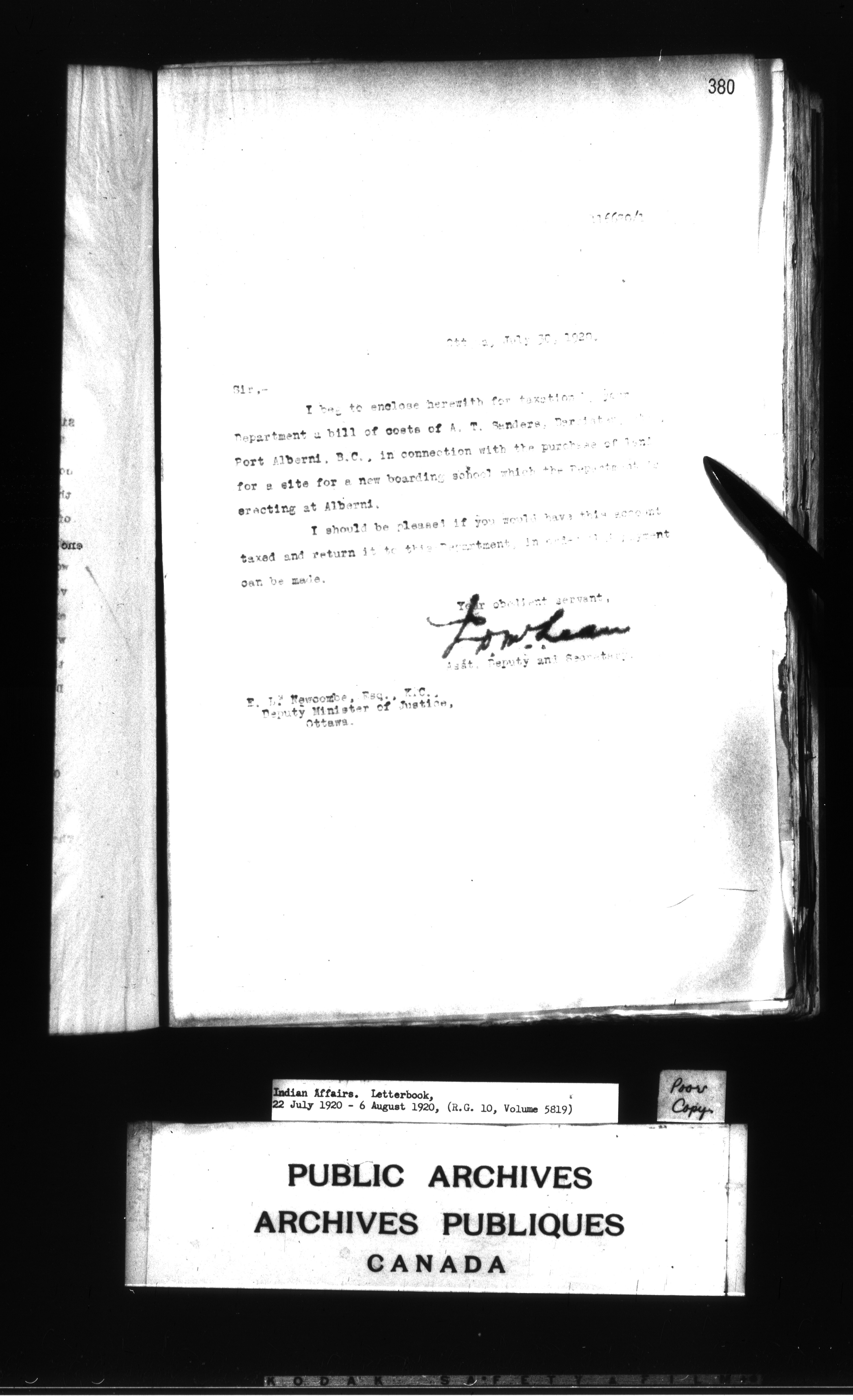 Department of Indian Affairs : Letterbooks of out-going correspondence relating to the administration of Indian Affairs in both eastern and western Canada, 1871-1920 - 8993