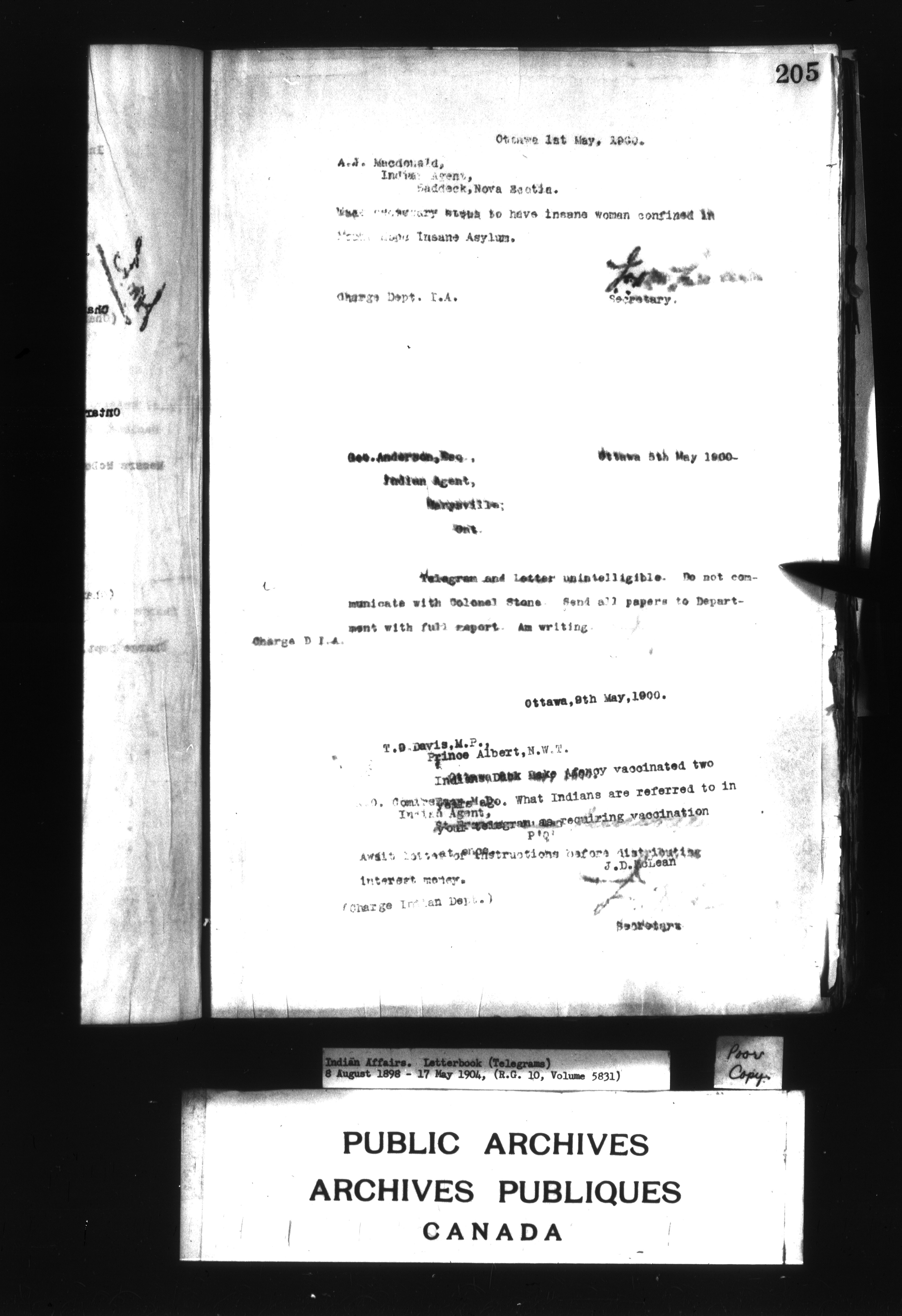 Department of Indian Affairs : Letterbooks of out-going correspondence relating to the administration of Indian Affairs in both eastern and western Canada, 1871-1920 - 8996