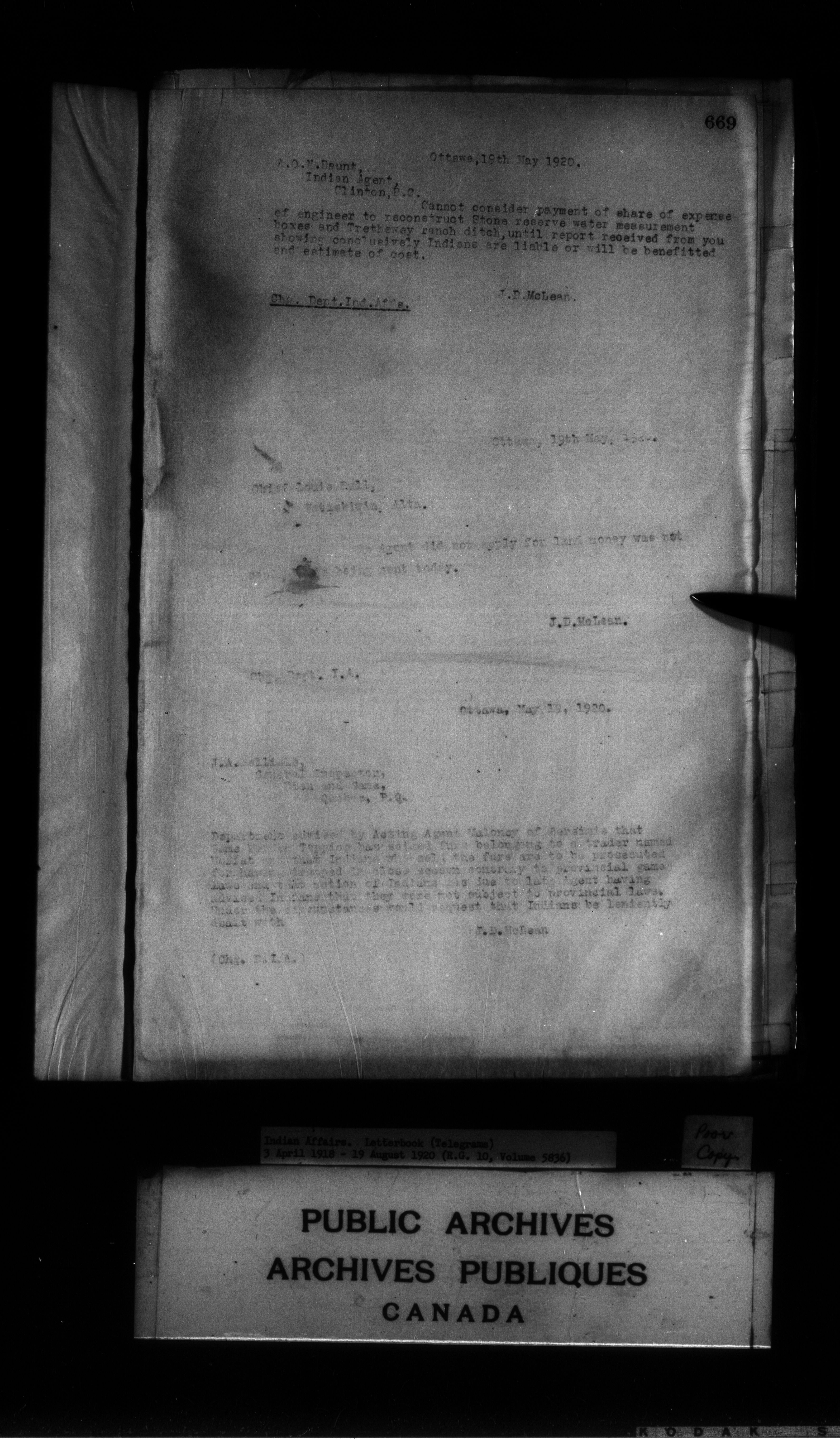 Department of Indian Affairs : Letterbooks of out-going correspondence relating to the administration of Indian Affairs in both eastern and western Canada, 1871-1920 - 8999
