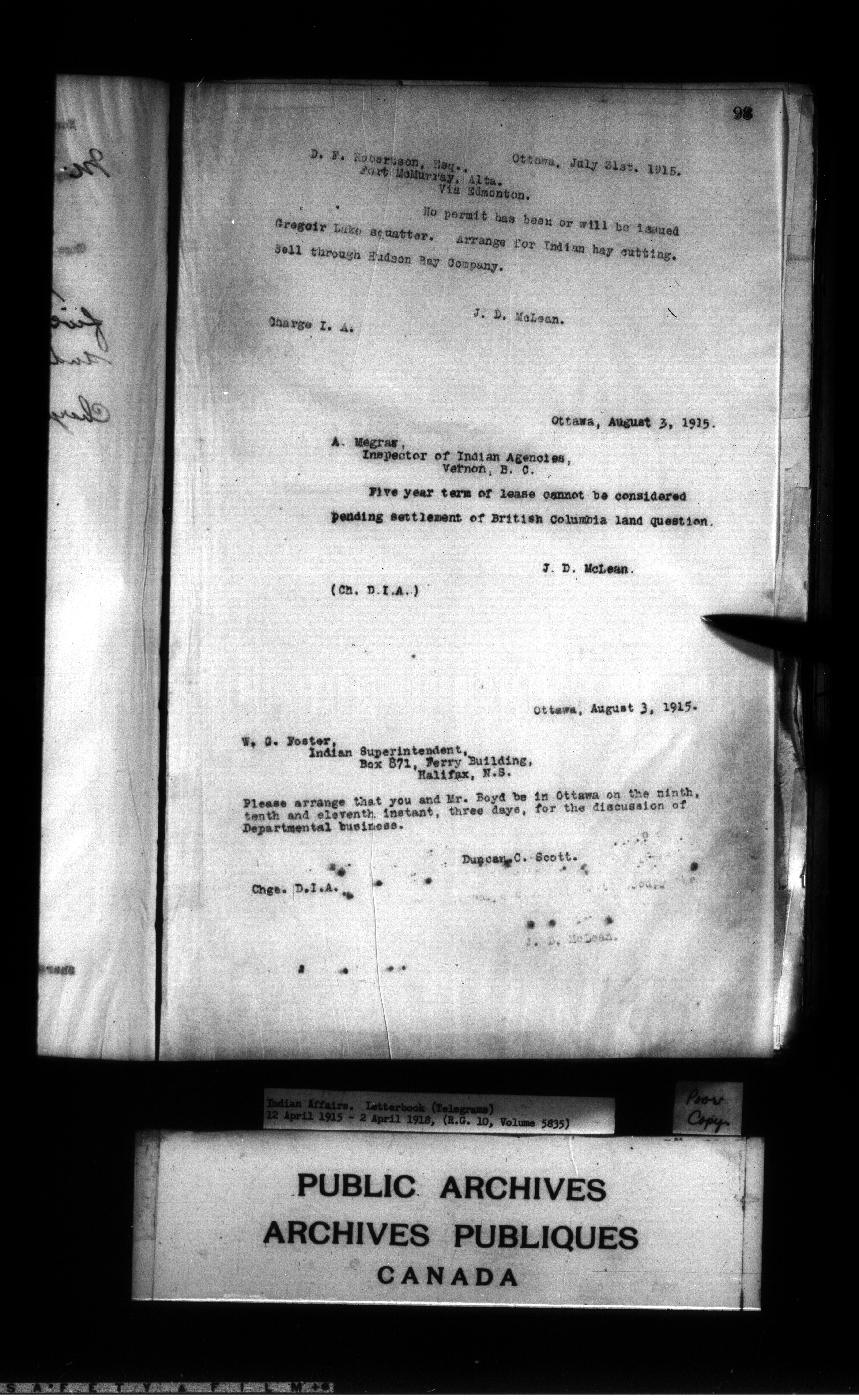 Department of Indian Affairs : Letterbooks of out-going correspondence relating to the administration of Indian Affairs in both eastern and western Canada, 1871-1920 - 8999