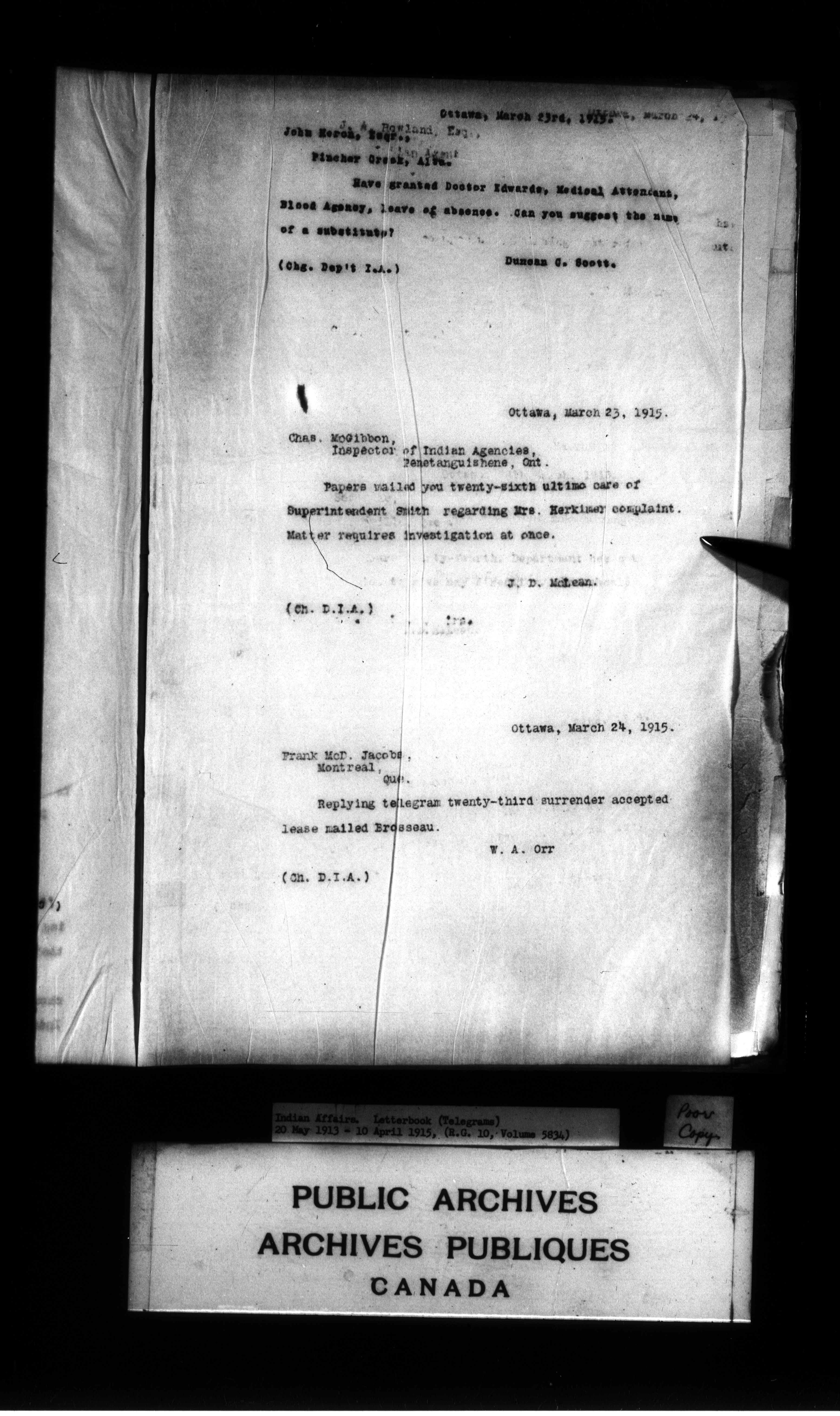 Department of Indian Affairs : Letterbooks of out-going correspondence relating to the administration of Indian Affairs in both eastern and western Canada, 1871-1920 - 8999