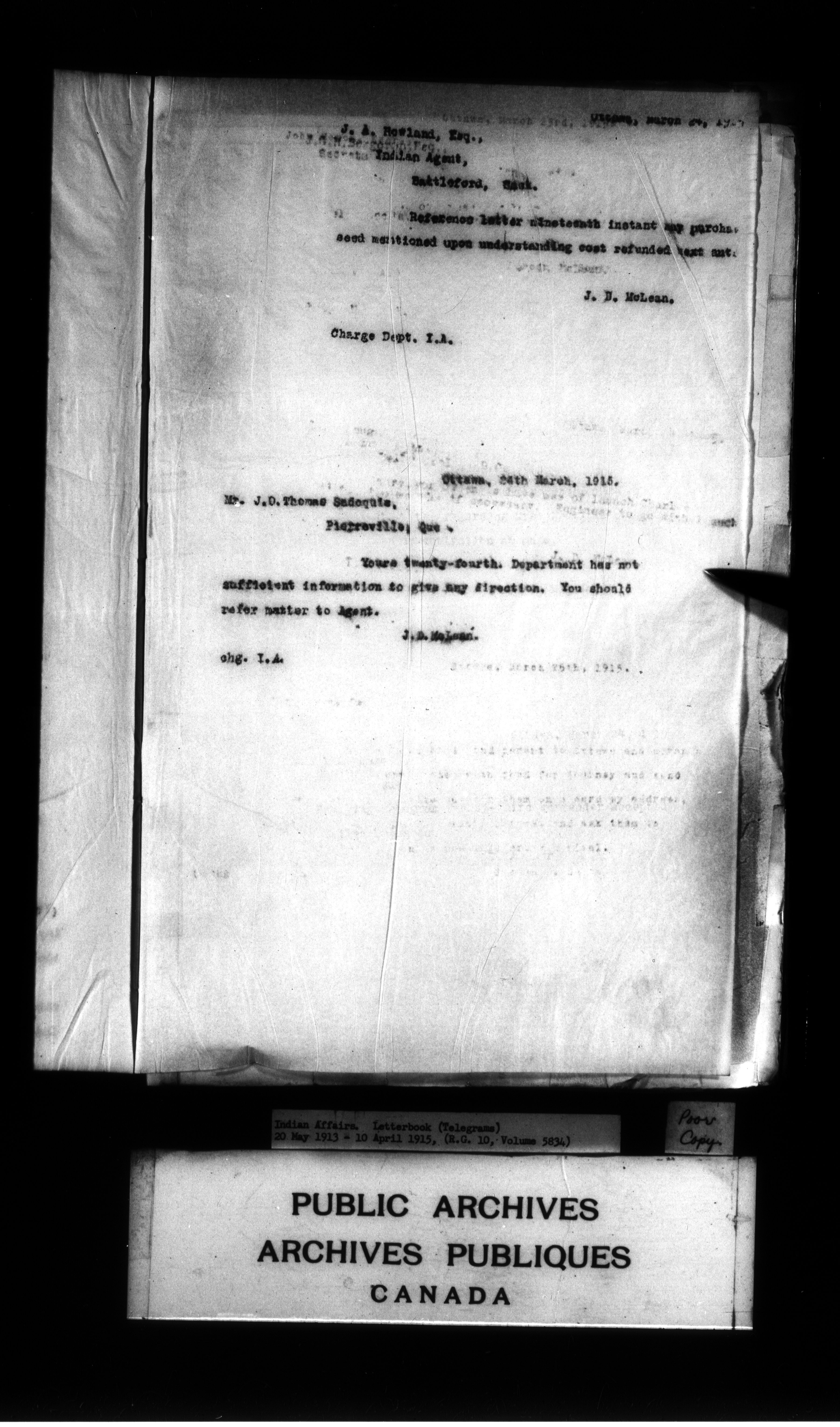 Department of Indian Affairs : Letterbooks of out-going correspondence relating to the administration of Indian Affairs in both eastern and western Canada, 1871-1920 - 8999