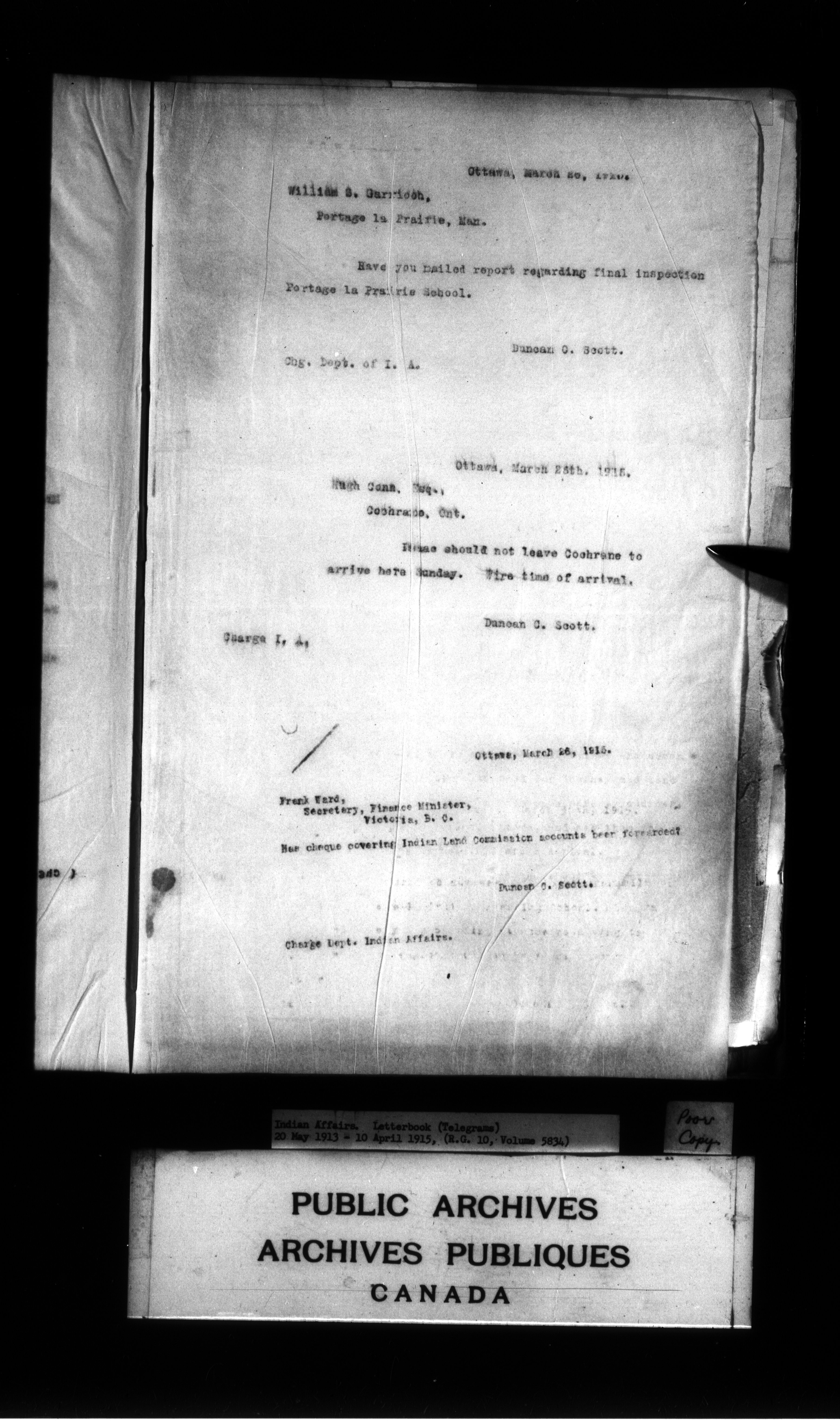 Department of Indian Affairs : Letterbooks of out-going correspondence relating to the administration of Indian Affairs in both eastern and western Canada, 1871-1920 - 8999
