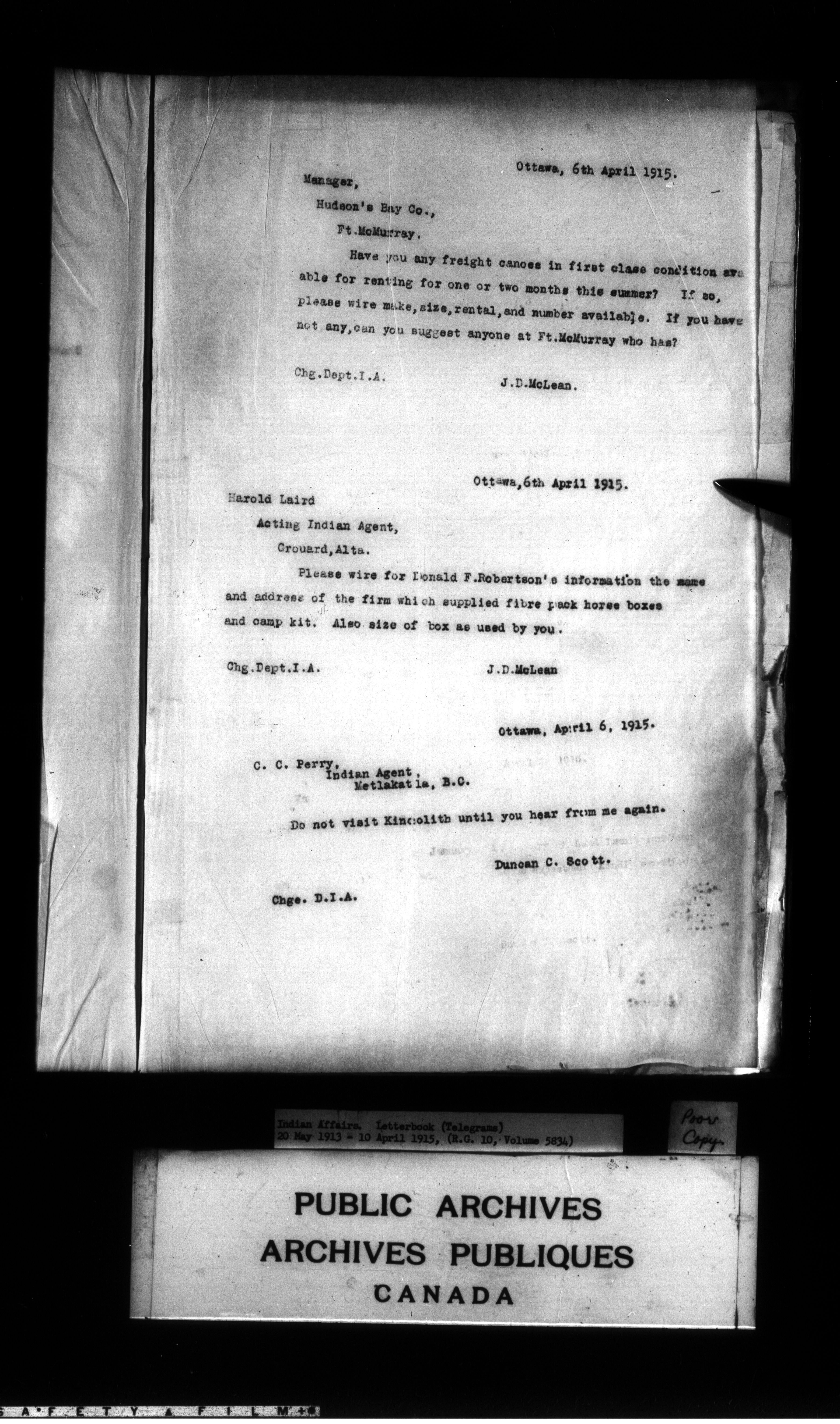 Department of Indian Affairs : Letterbooks of out-going correspondence relating to the administration of Indian Affairs in both eastern and western Canada, 1871-1920 - 8999