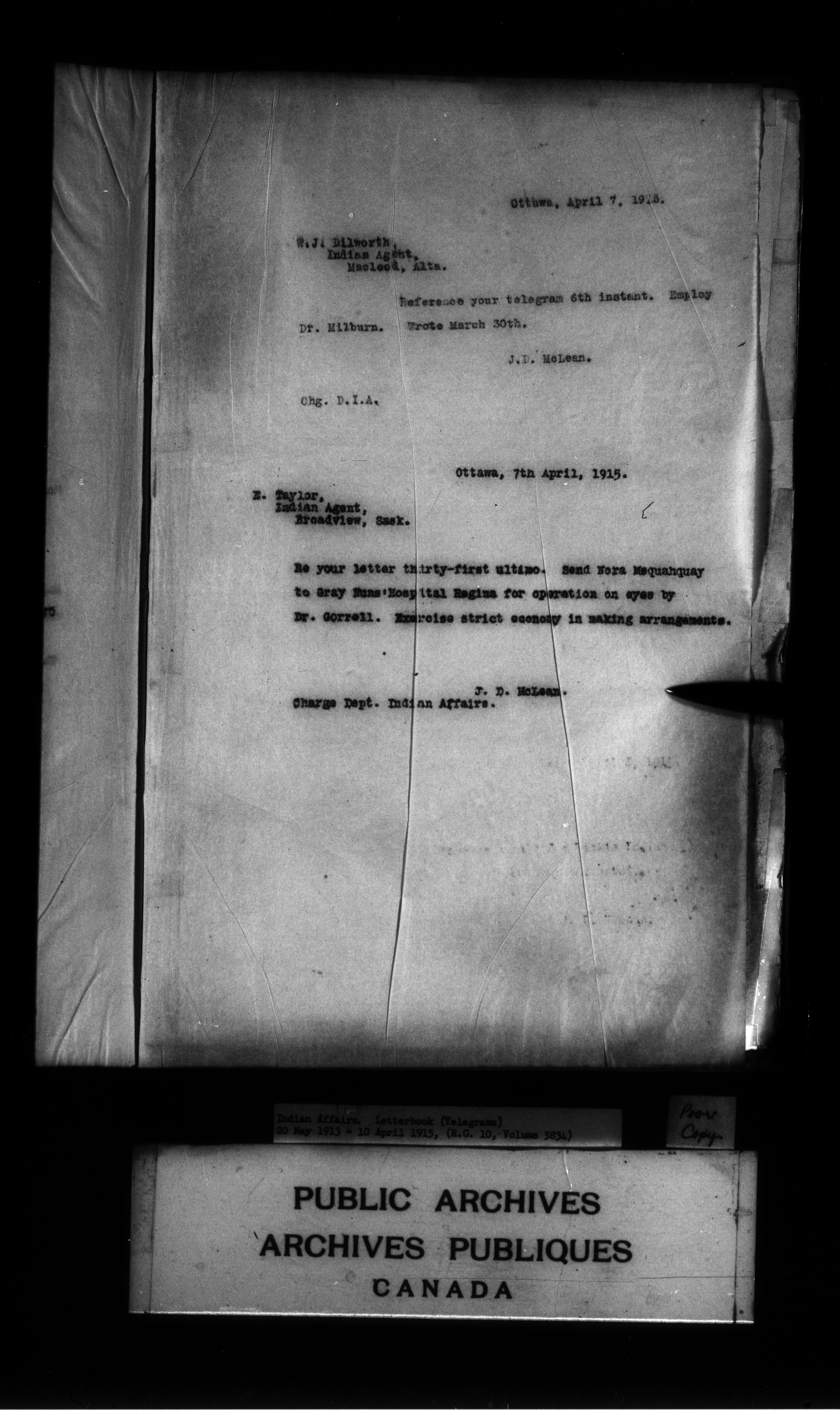 Department of Indian Affairs : Letterbooks of out-going correspondence relating to the administration of Indian Affairs in both eastern and western Canada, 1871-1920 - 8999