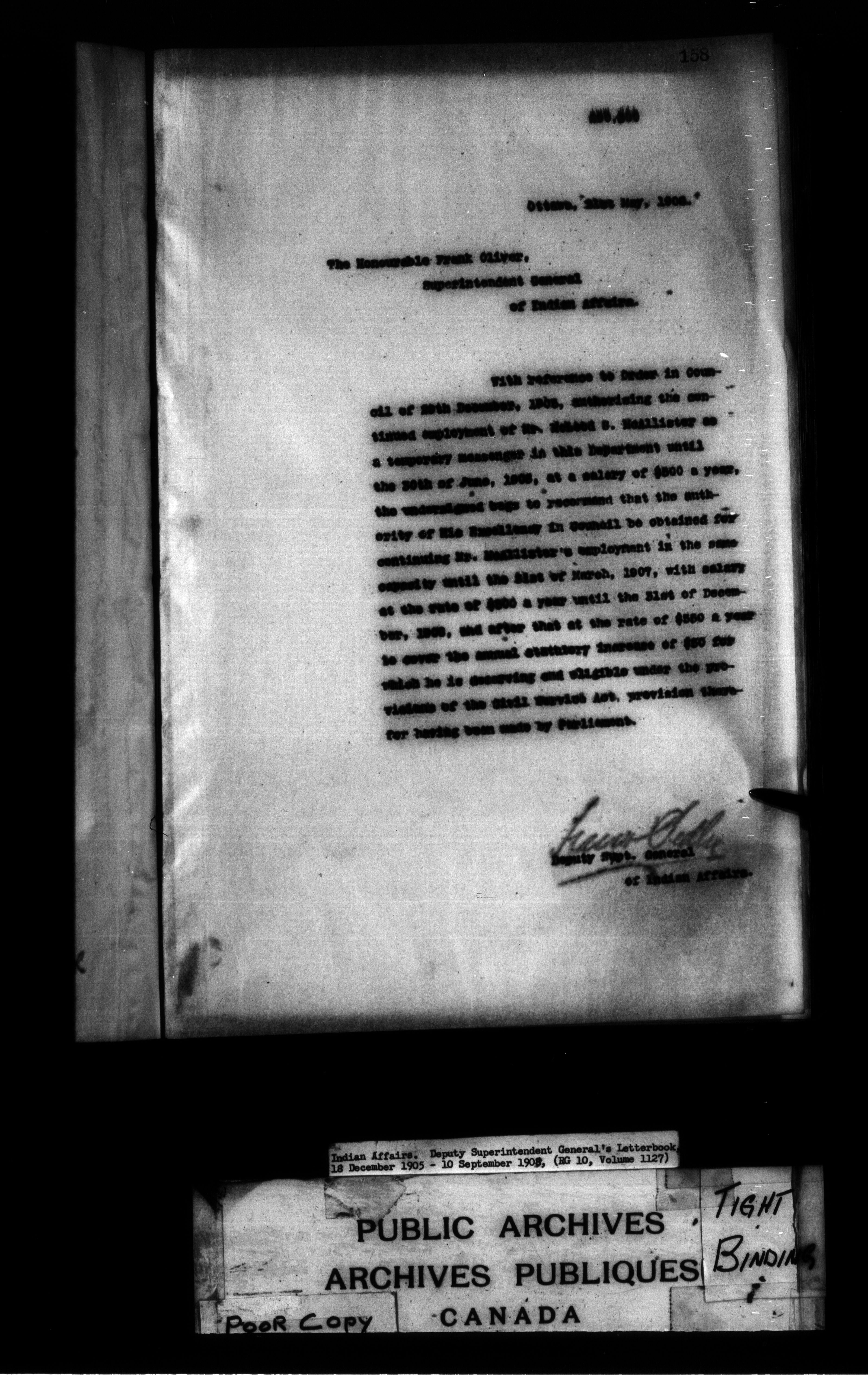 Office of the Deputy Superintendent General of Indian Affairs : letterbooks, 1862-1924 - 9005