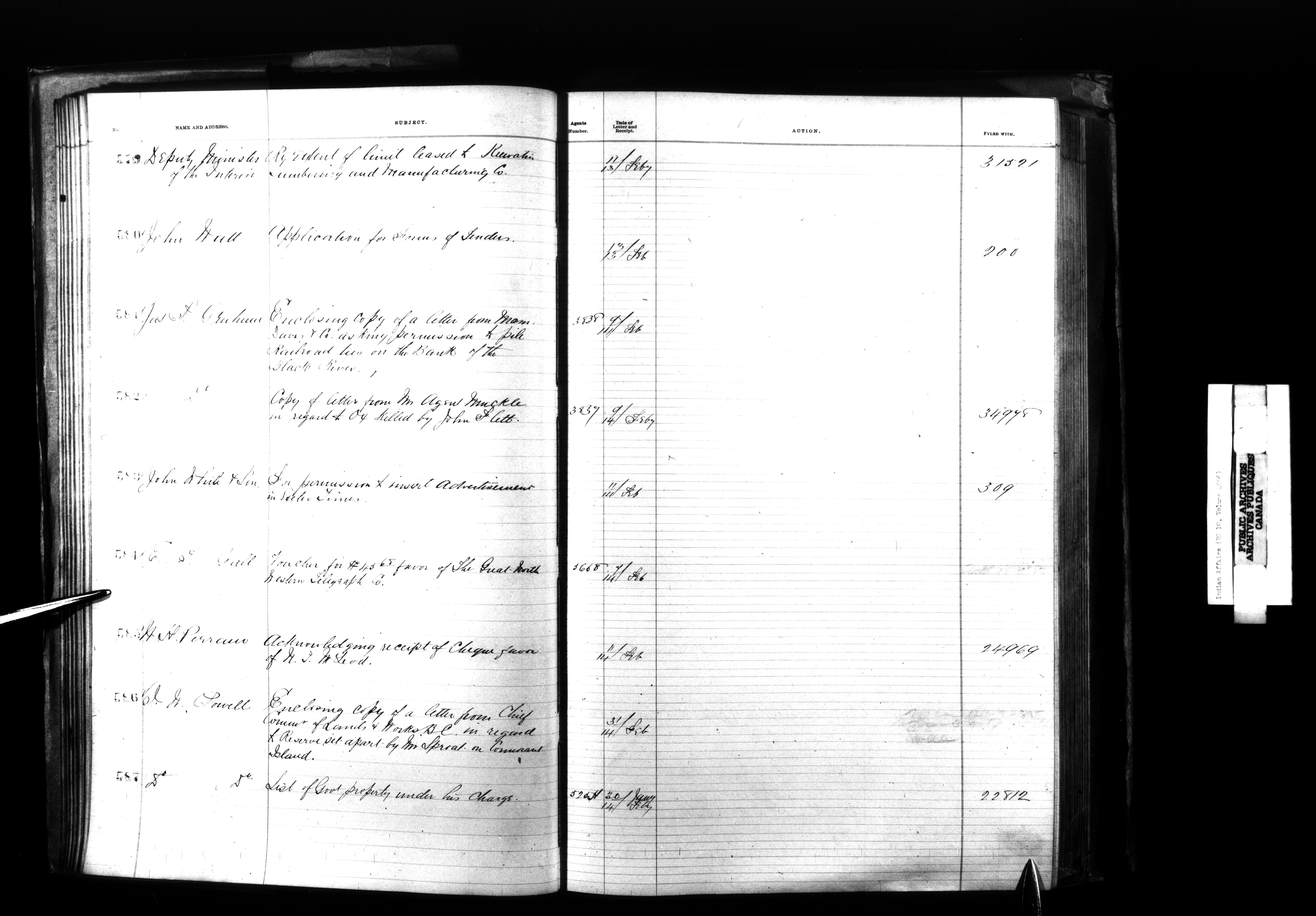 Department of Indian Affairs, Headquarters central registry system : registers, indices and indexed registers - 9010