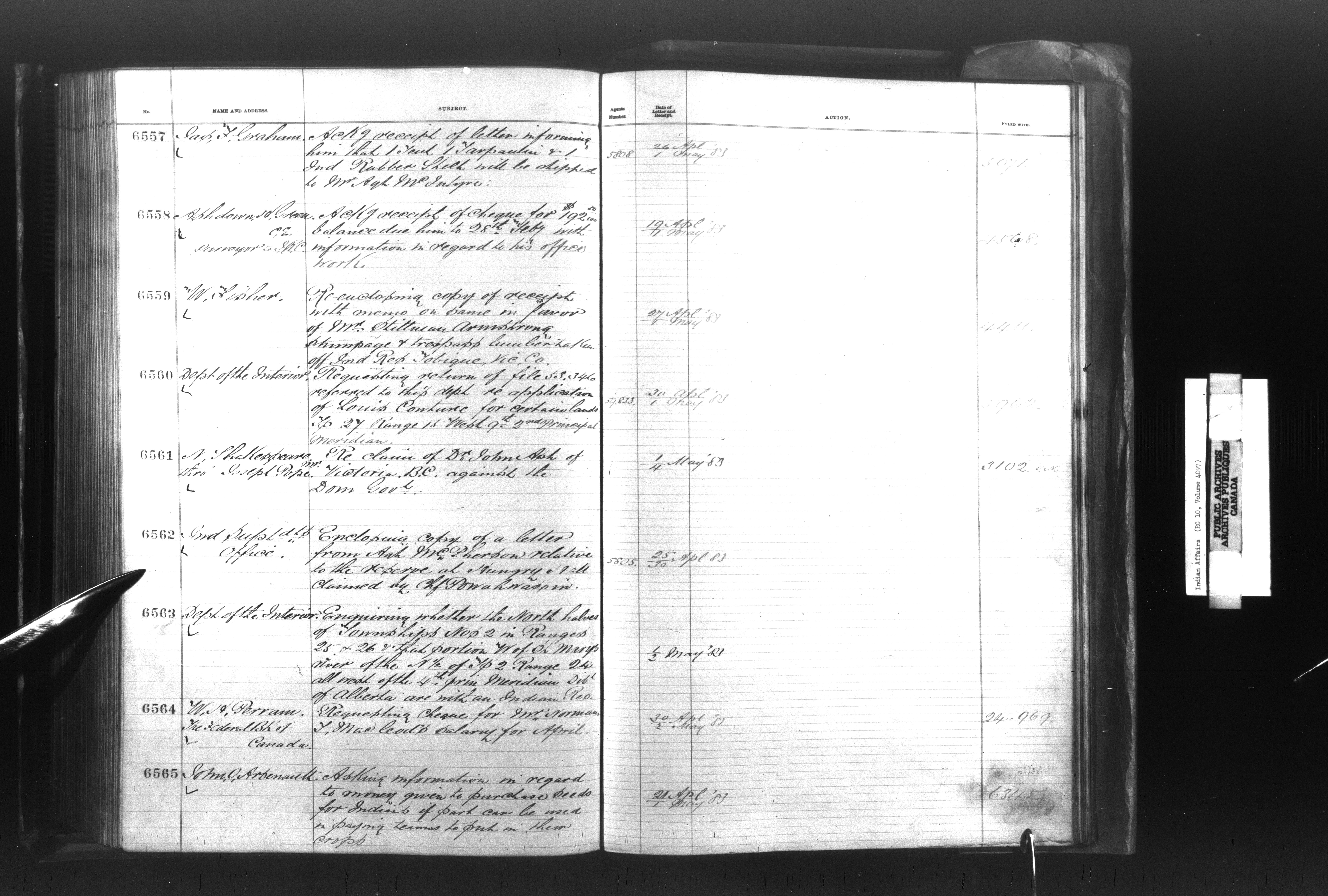 Department of Indian Affairs, Headquarters central registry system : registers, indices and indexed registers - 9011