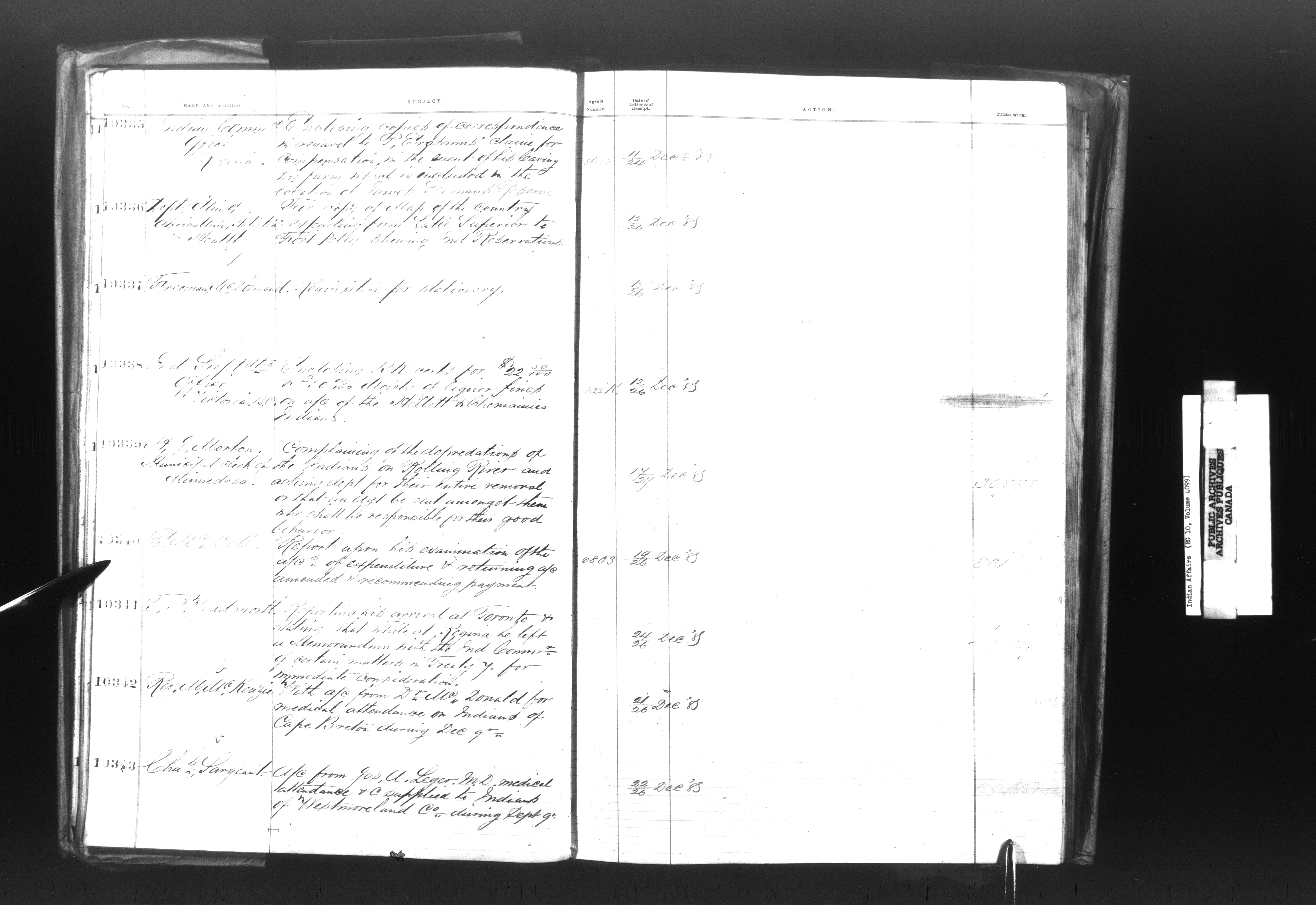 Department of Indian Affairs, Headquarters central registry system : registers, indices and indexed registers - 9011