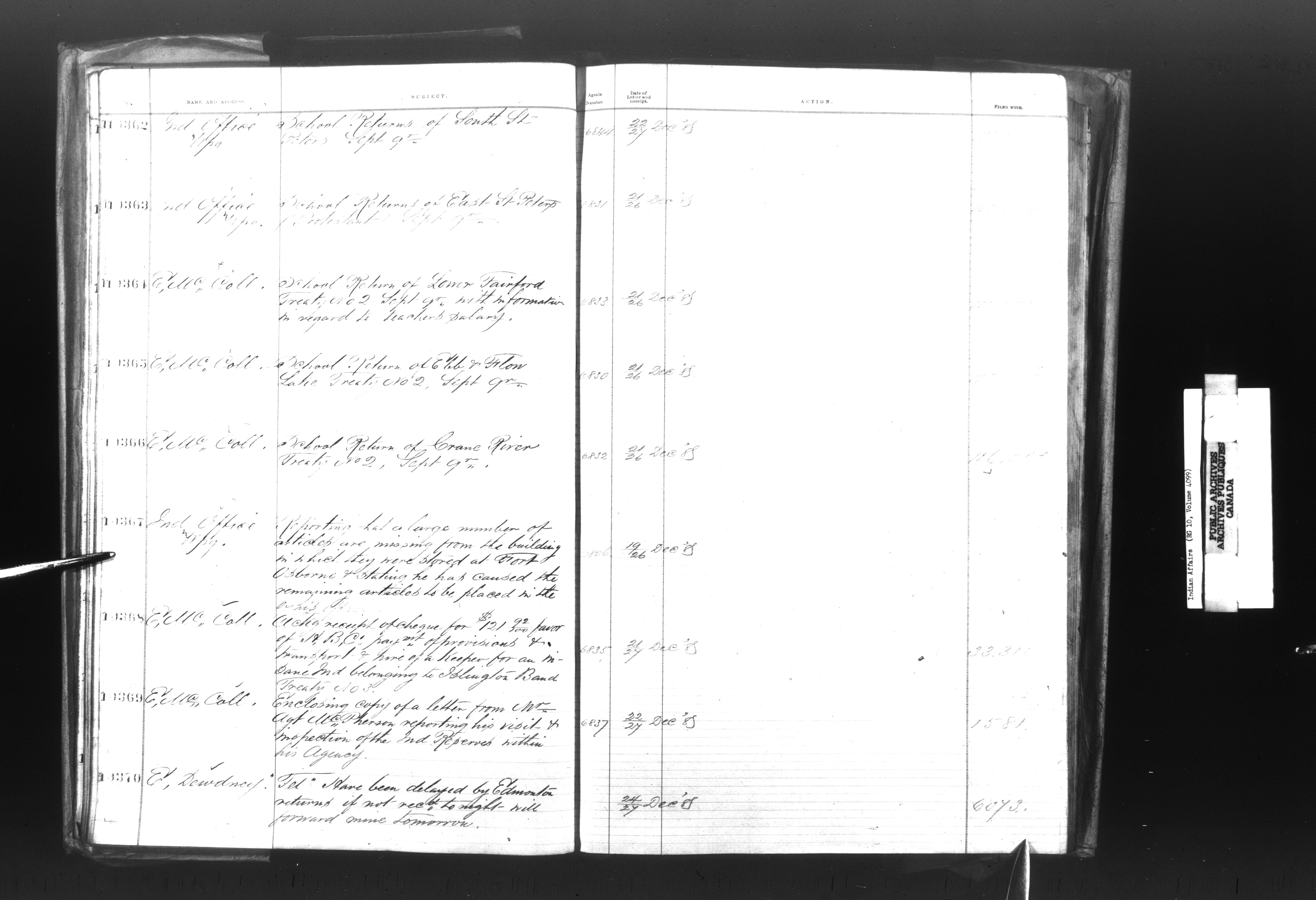 Department of Indian Affairs, Headquarters central registry system : registers, indices and indexed registers - 9011
