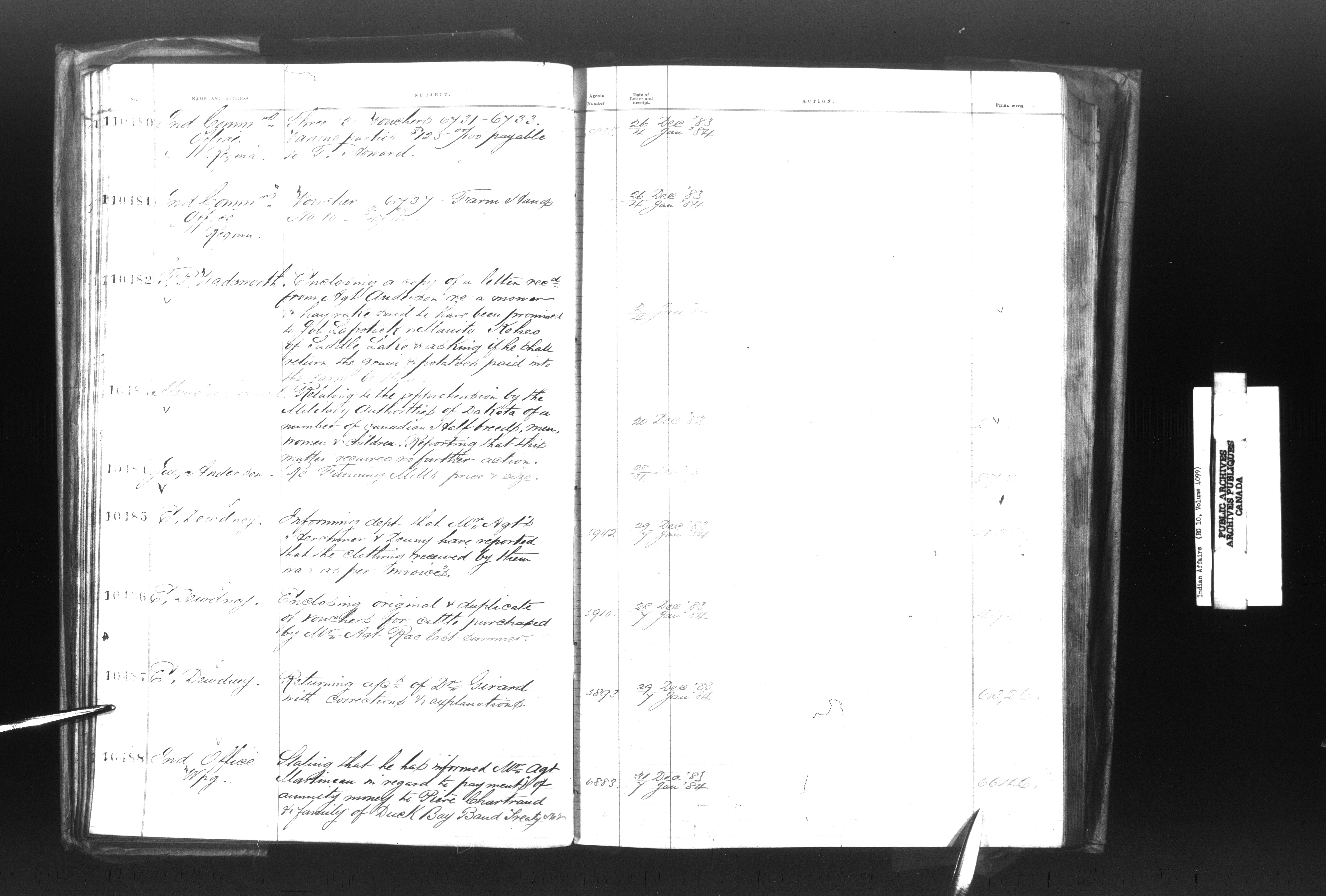 Department of Indian Affairs, Headquarters central registry system : registers, indices and indexed registers - 9011