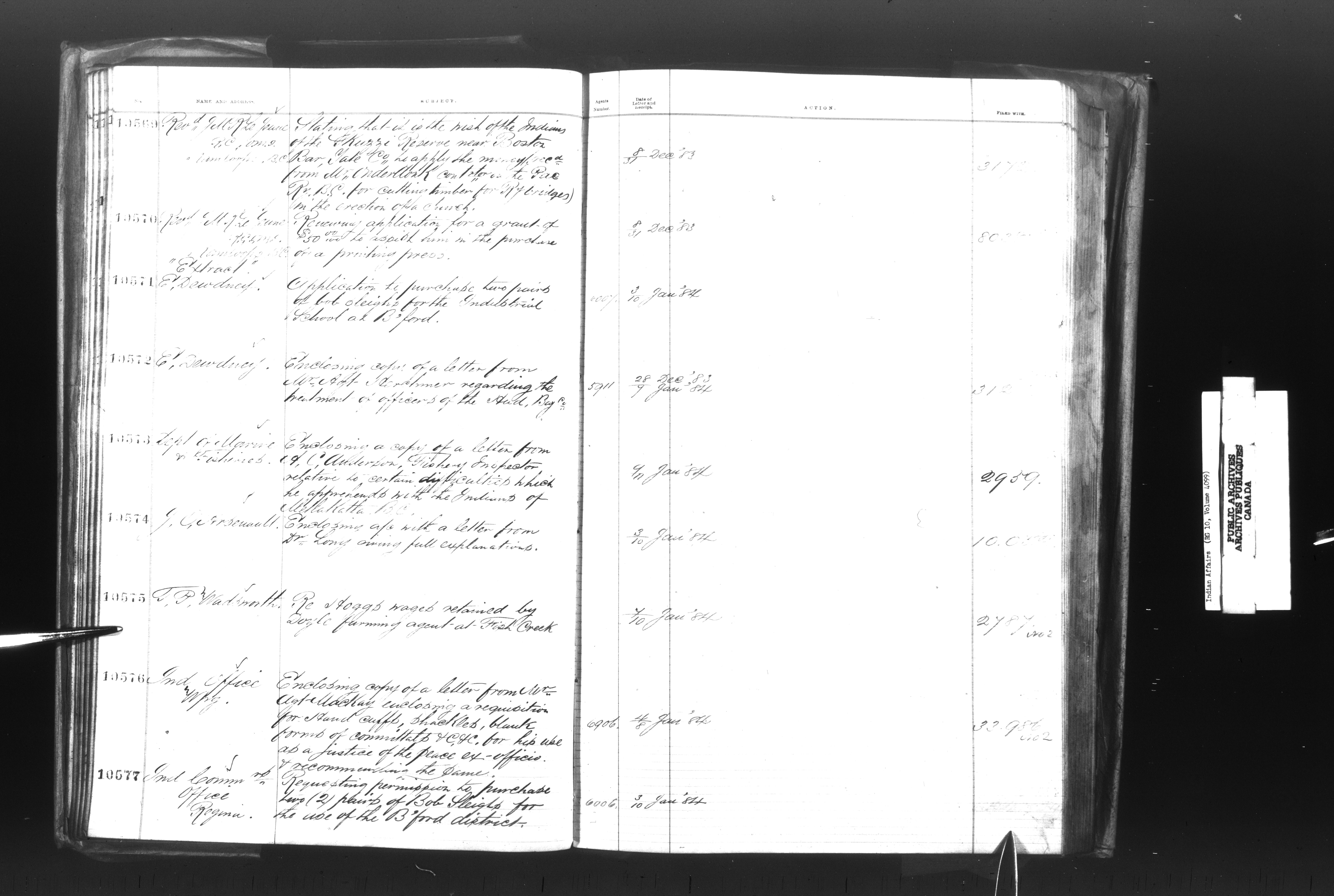 Department of Indian Affairs, Headquarters central registry system :registers, indices and indexed registers : C-9011