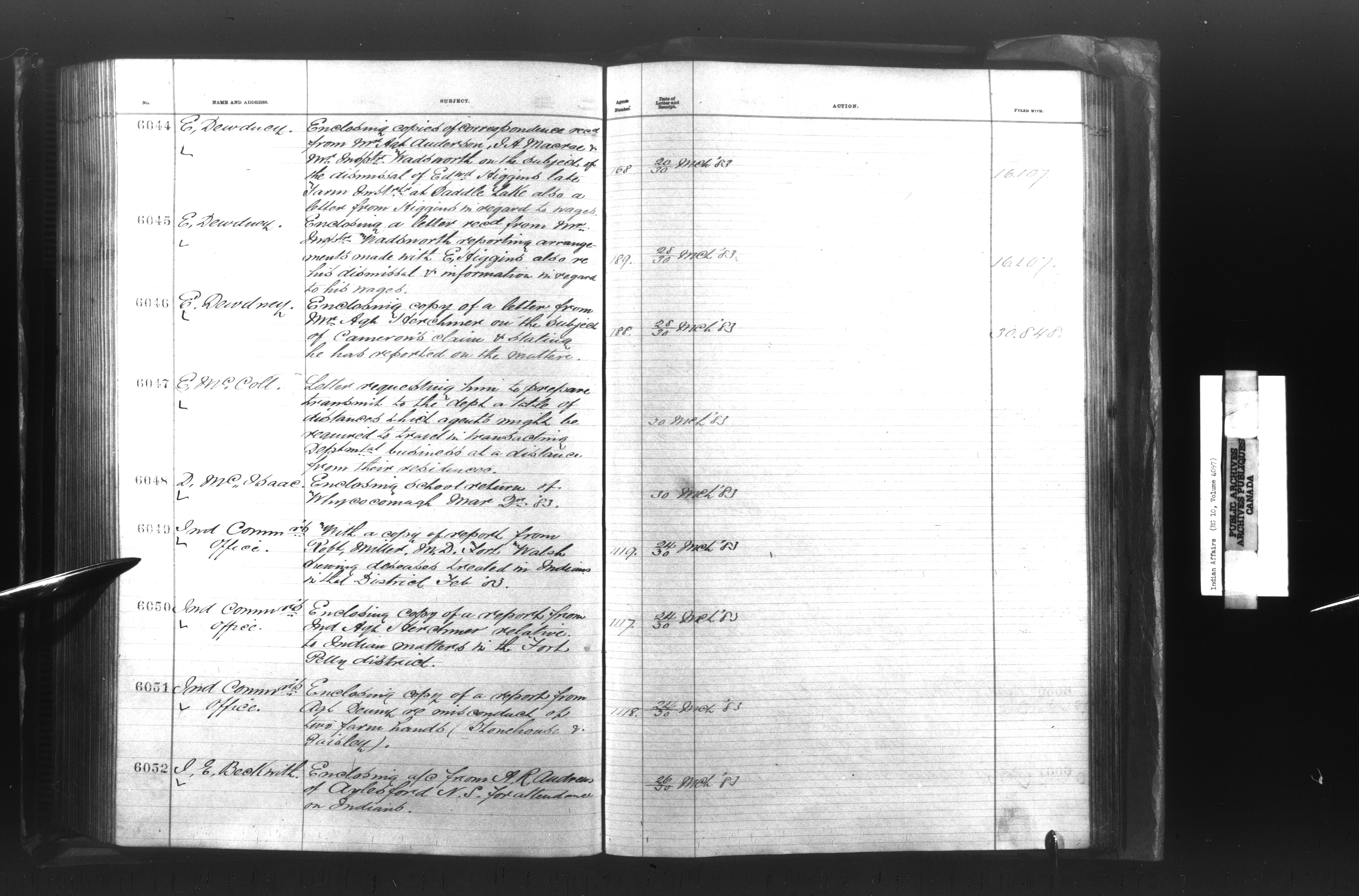 Department of Indian Affairs, Headquarters central registry system : registers, indices and indexed registers - 9011