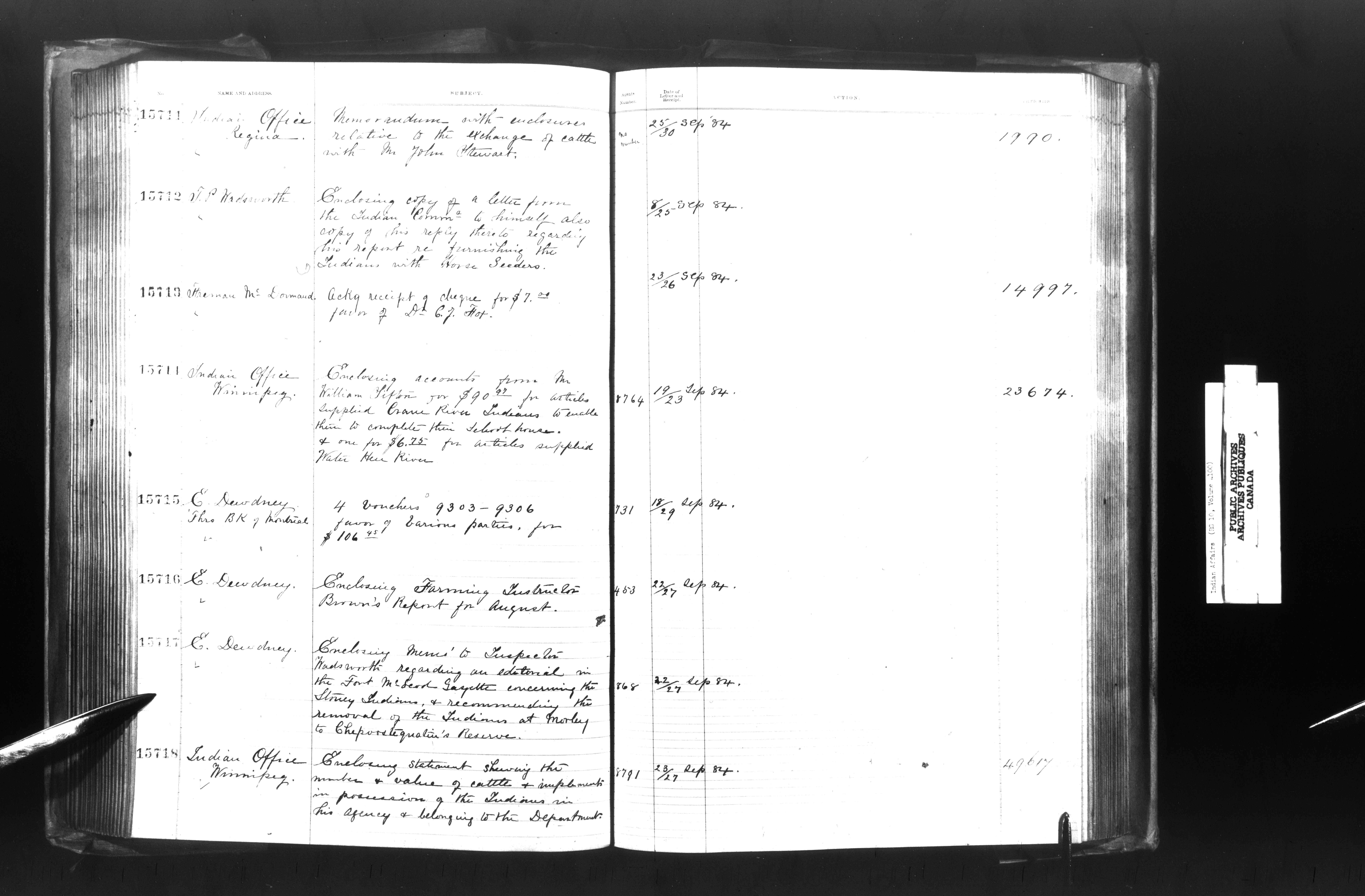 Department of Indian Affairs, Headquarters central registry system : registers, indices and indexed registers - 9012
