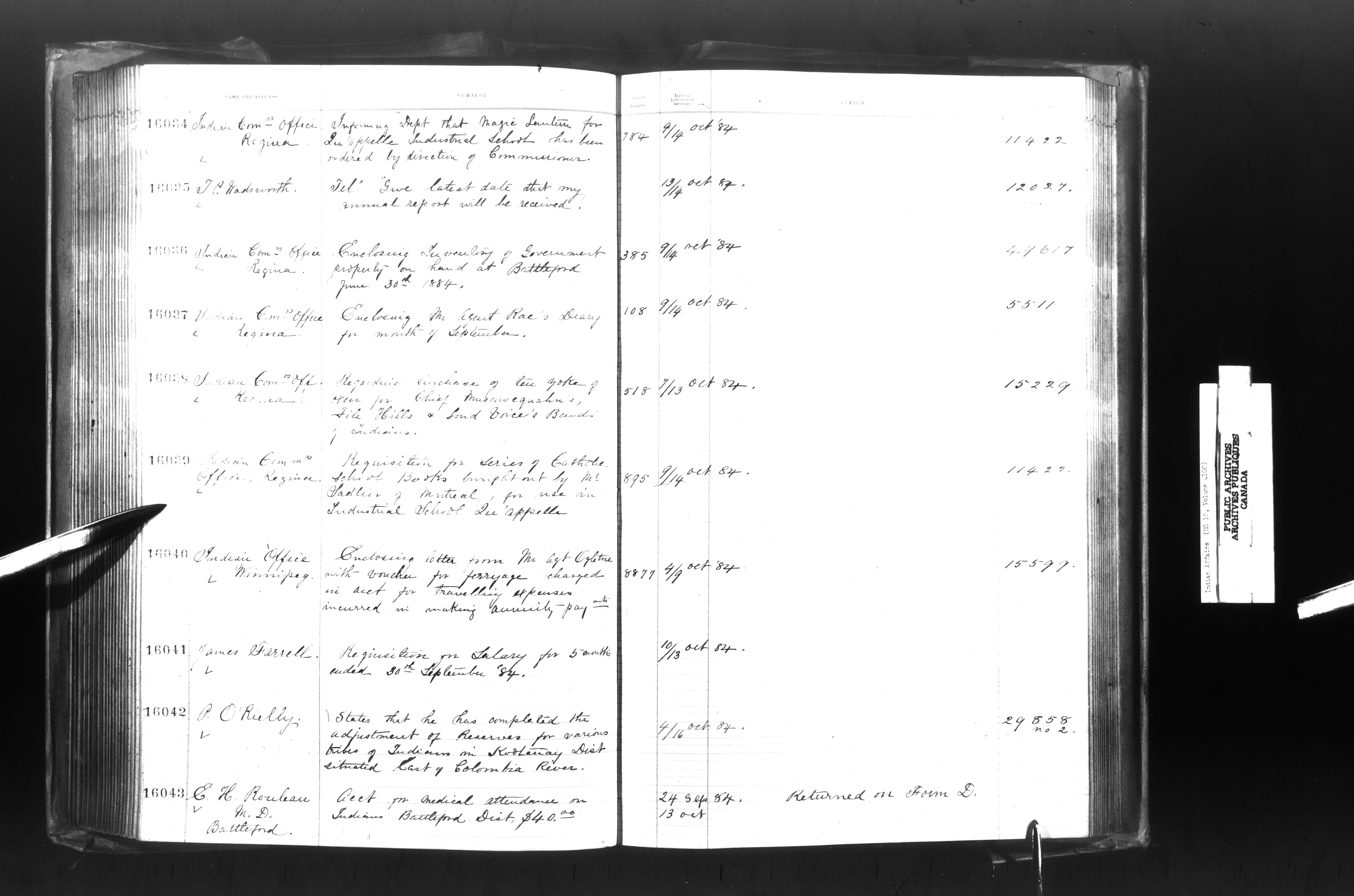 Department of Indian Affairs, Headquarters central registry system : registers, indices and indexed registers - 9012