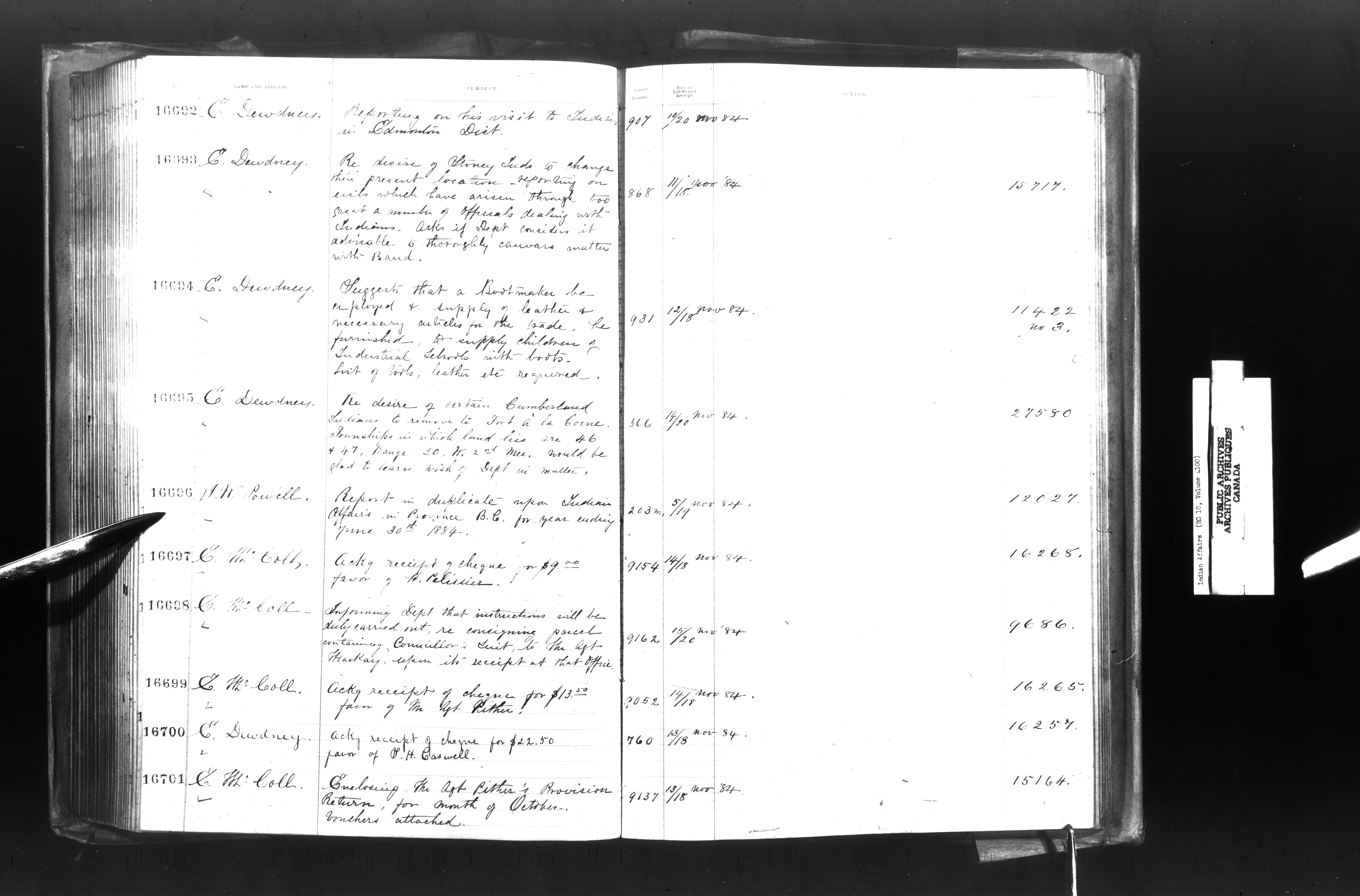 Department of Indian Affairs, Headquarters central registry system : registers, indices and indexed registers - 9012