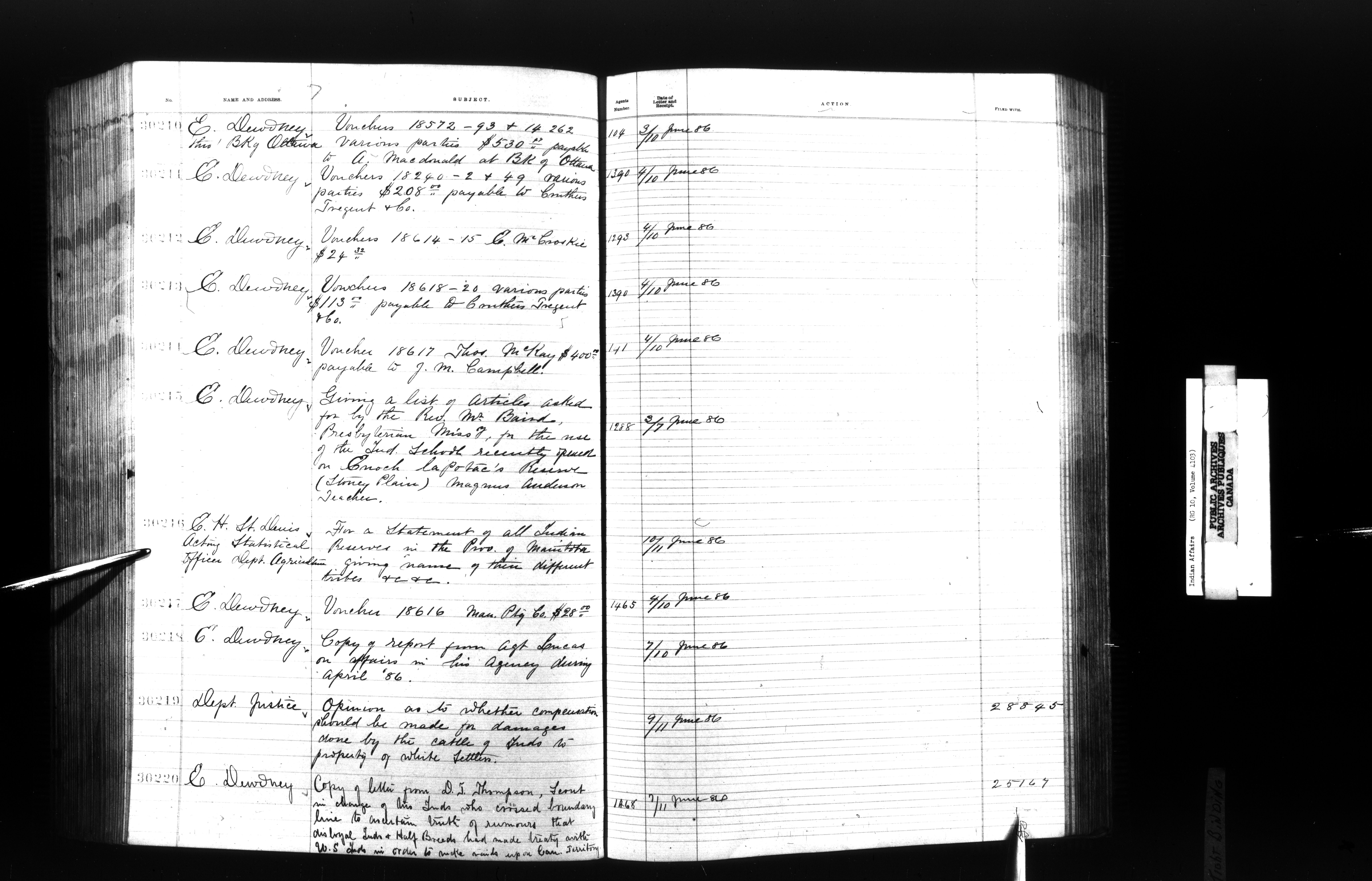 Department of Indian Affairs, Headquarters central registry system : registers, indices and indexed registers - 9014