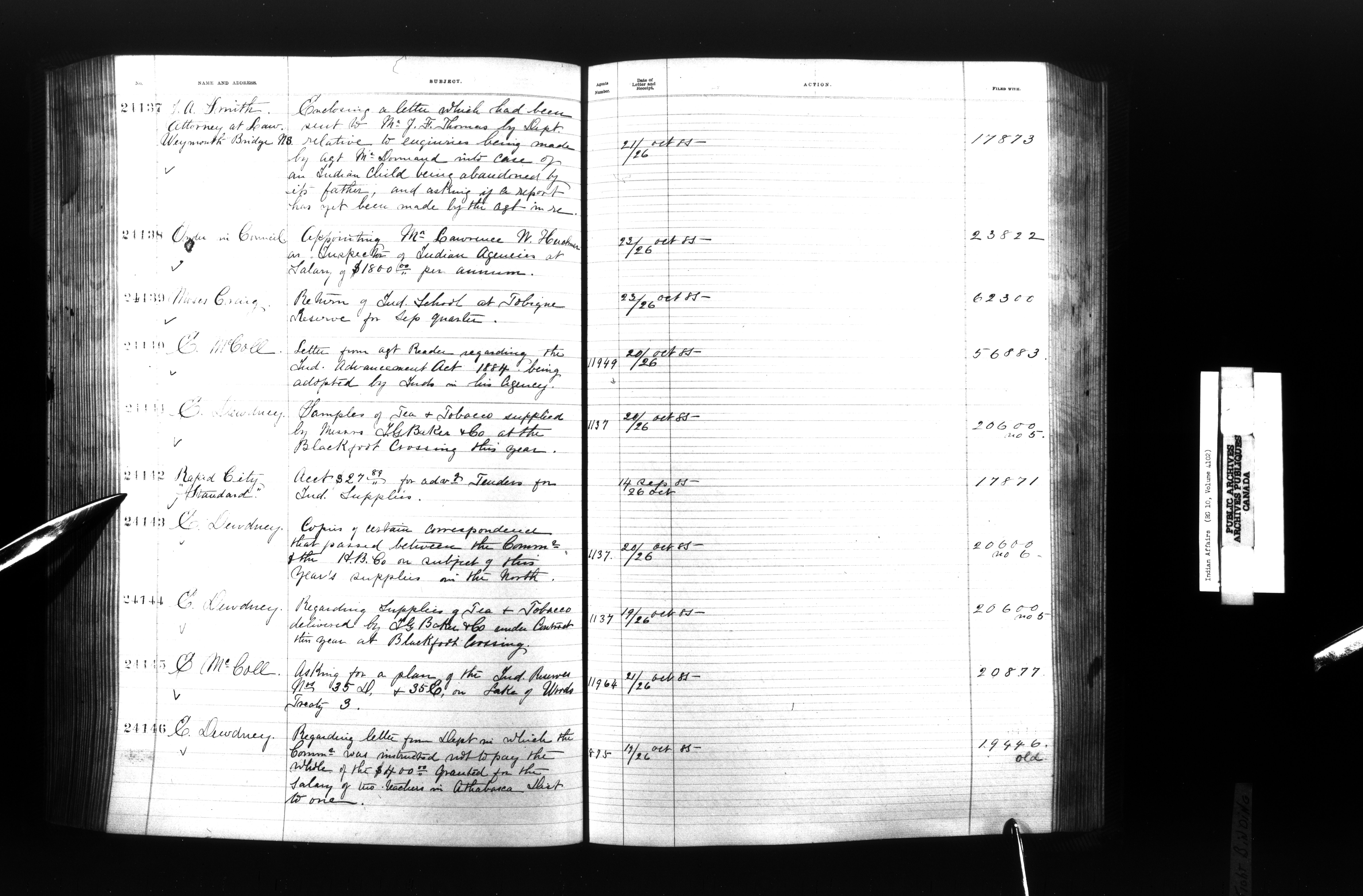 Department of Indian Affairs, Headquarters central registry system : registers, indices and indexed registers - 9014