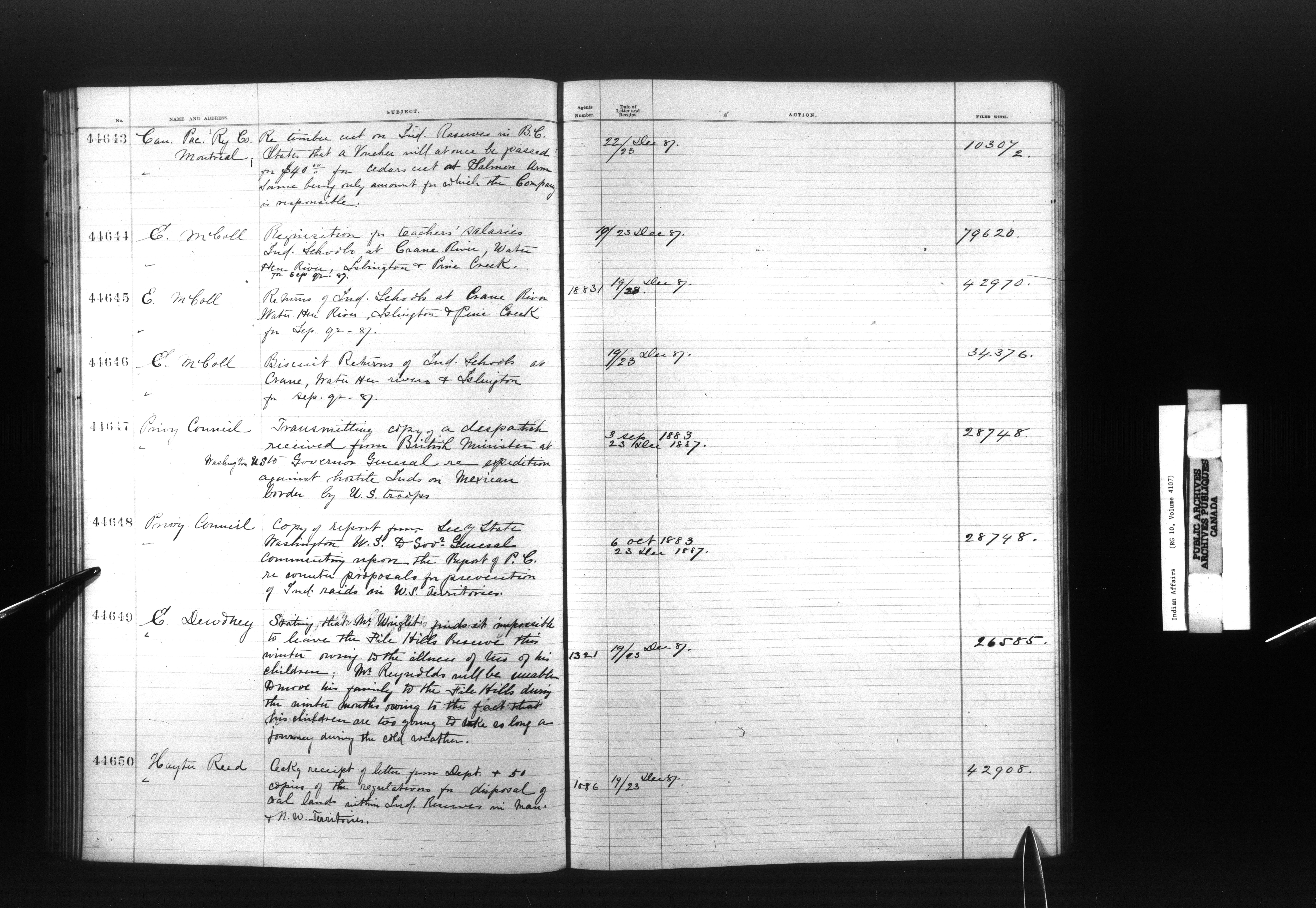 Department of Indian Affairs, Headquarters central registry system :registers, indices and indexed registers : C-9016