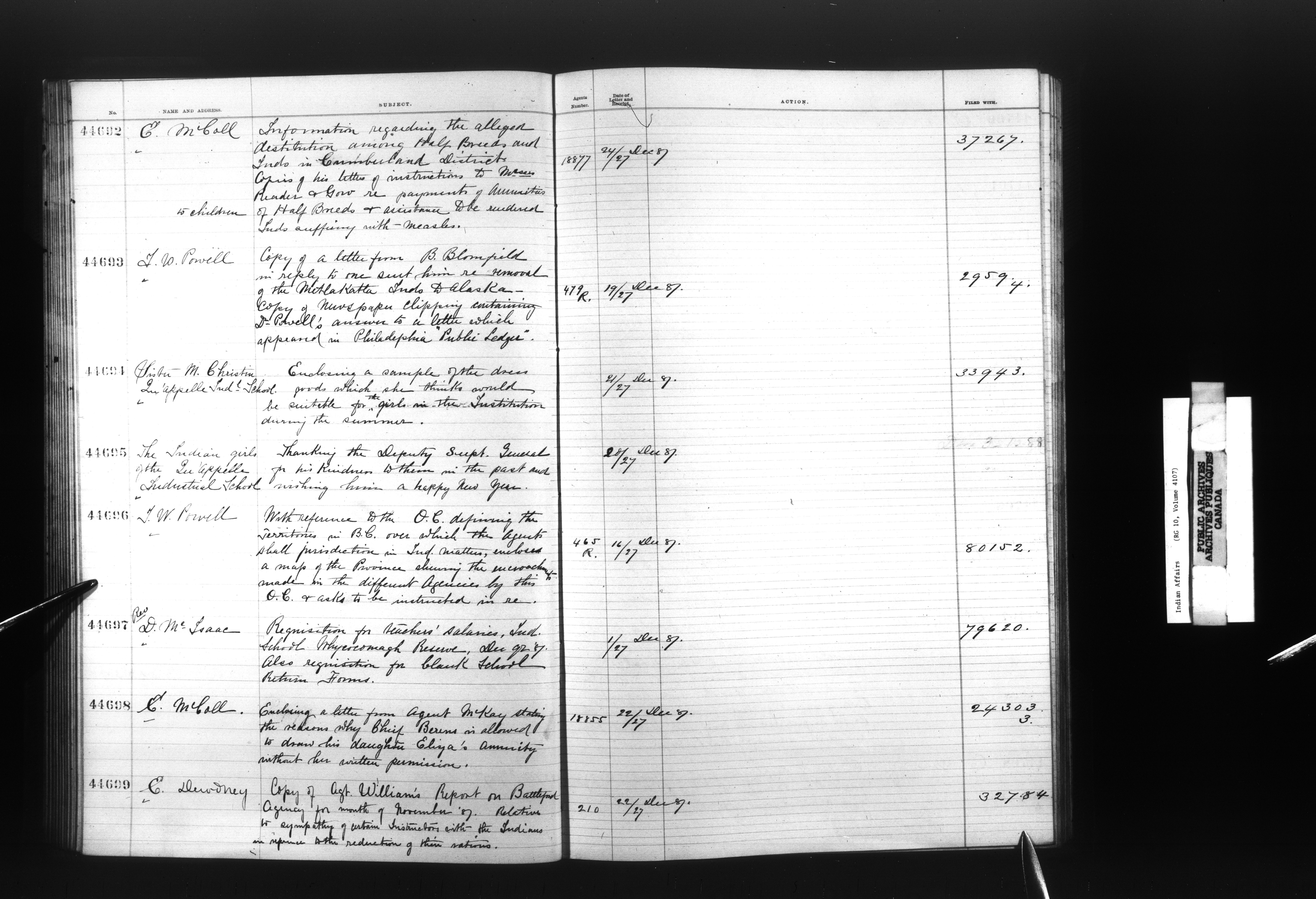 Department of Indian Affairs, Headquarters central registry system :registers, indices and indexed registers : C-9016