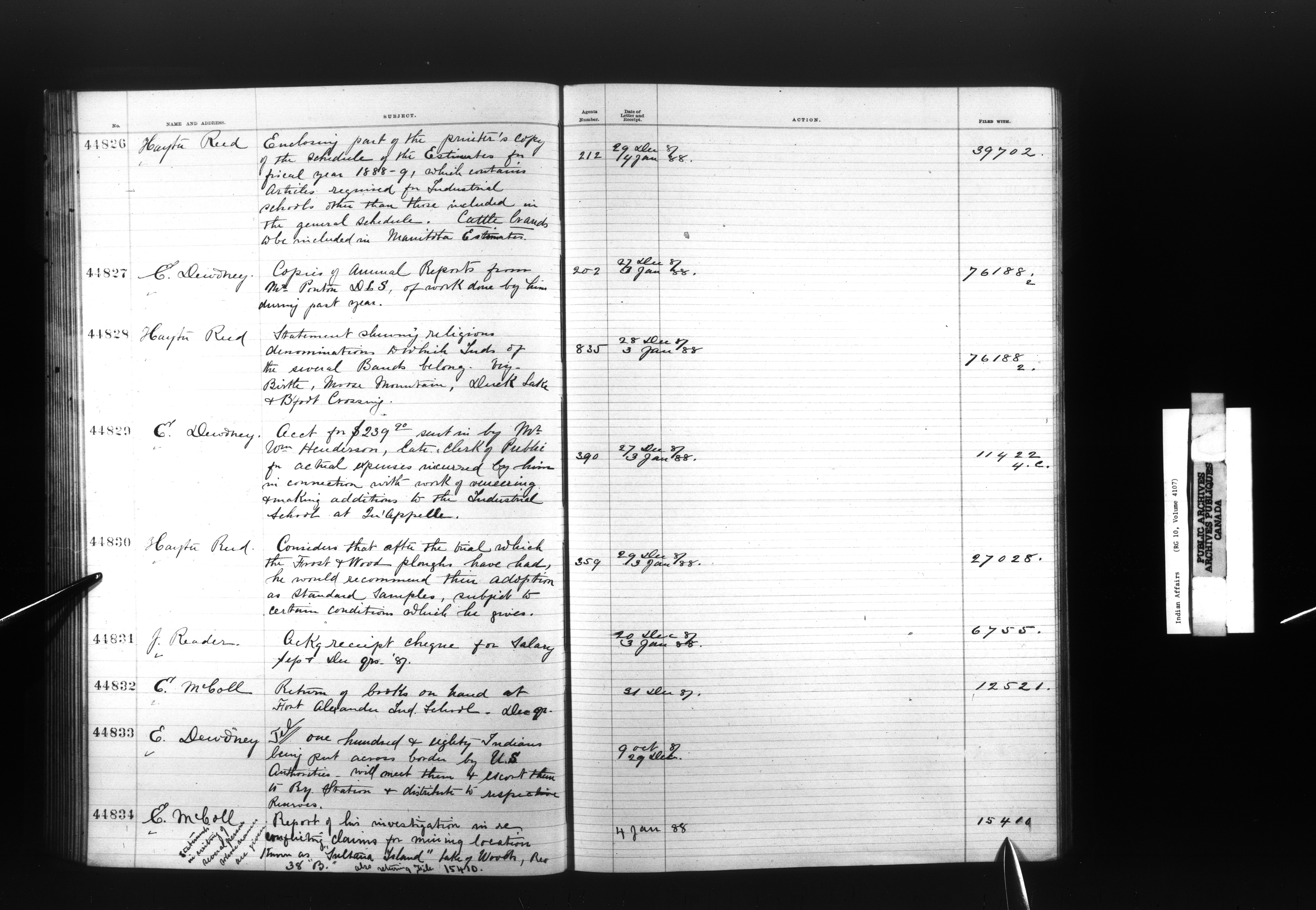 Department of Indian Affairs, Headquarters central registry system :registers, indices and indexed registers : C-9016