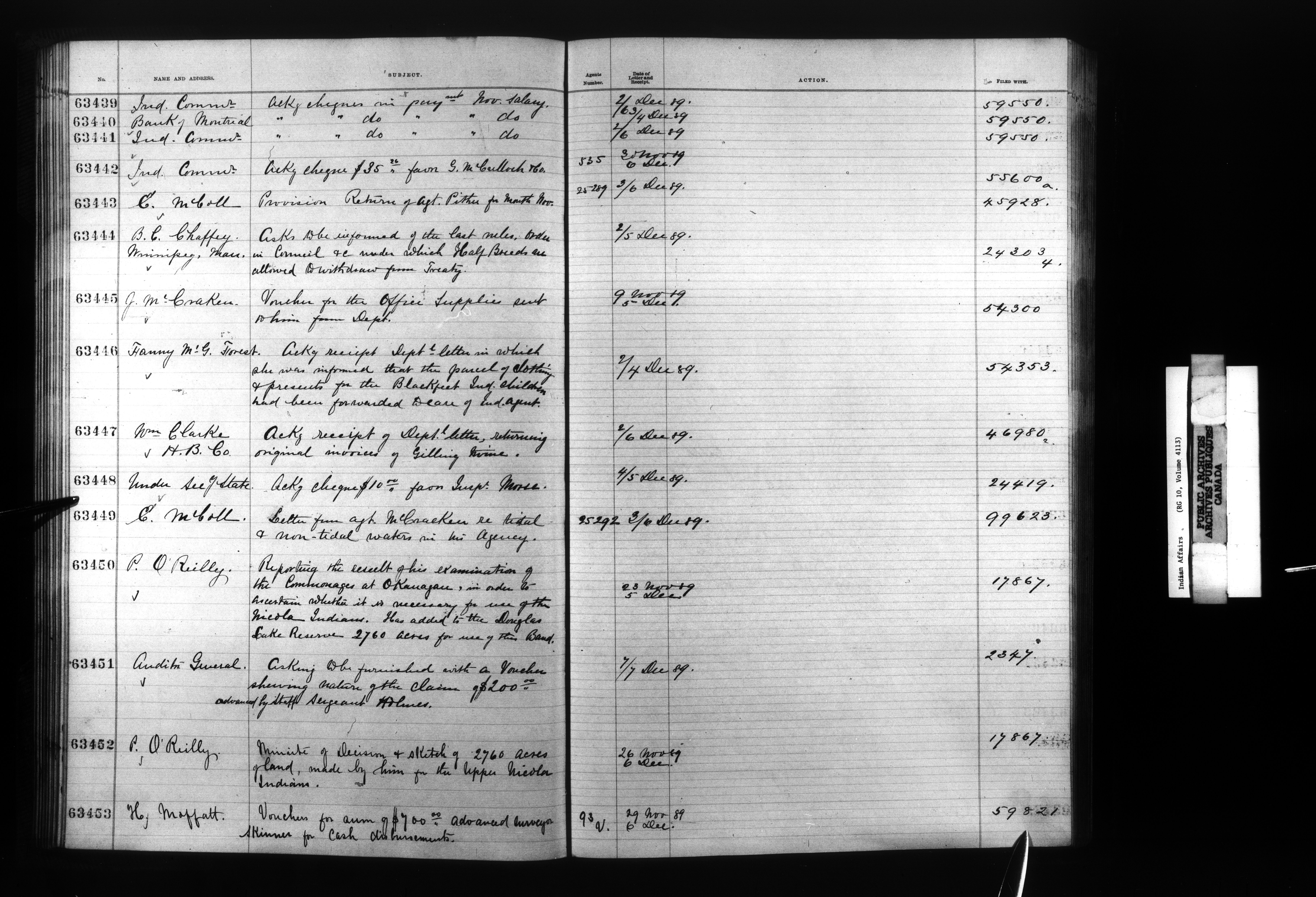 Department of Indian Affairs, Headquarters central registry system :registers, indices and indexed registers : C-9018