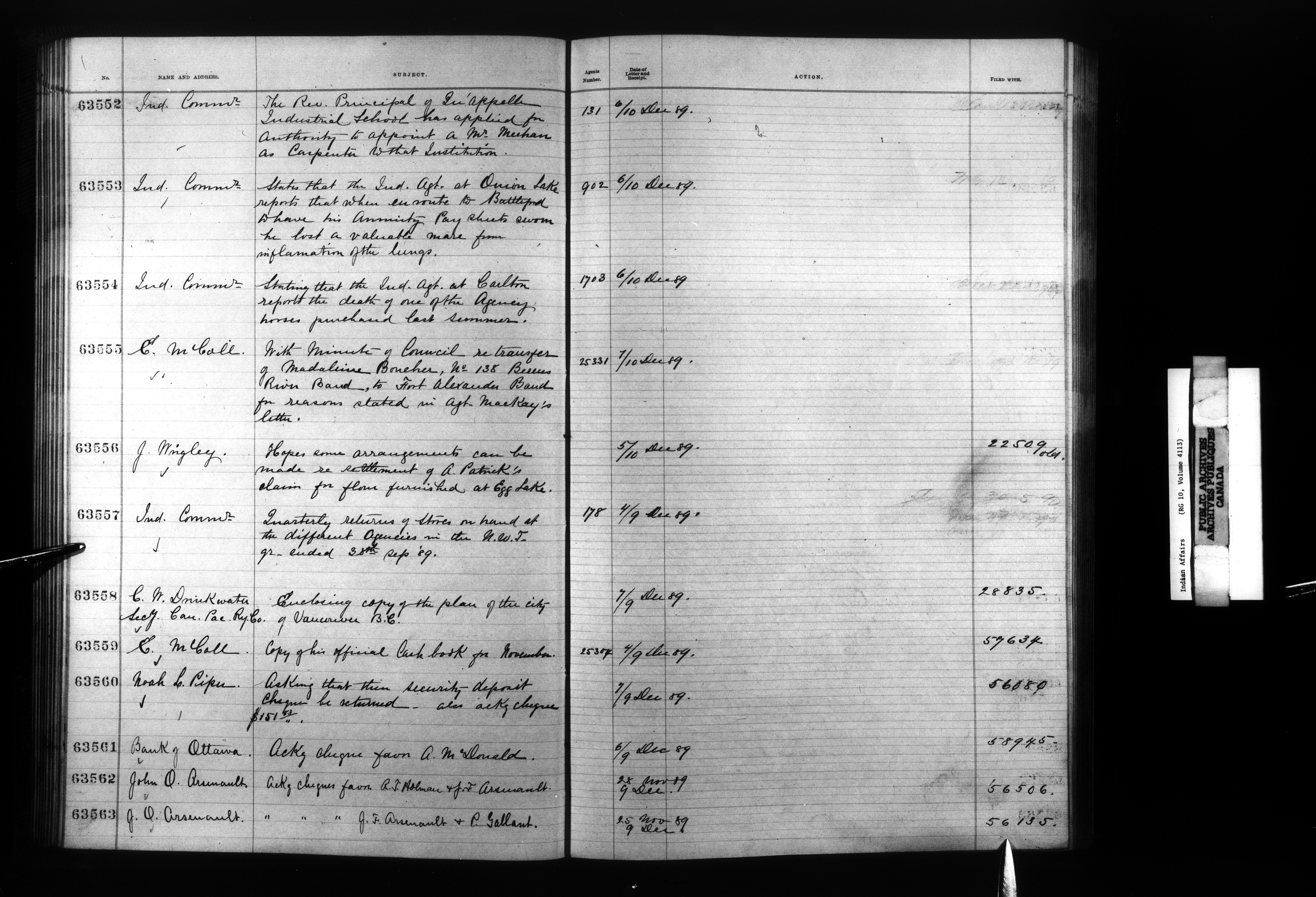Department of Indian Affairs, Headquarters central registry system :registers, indices and indexed registers : C-9018