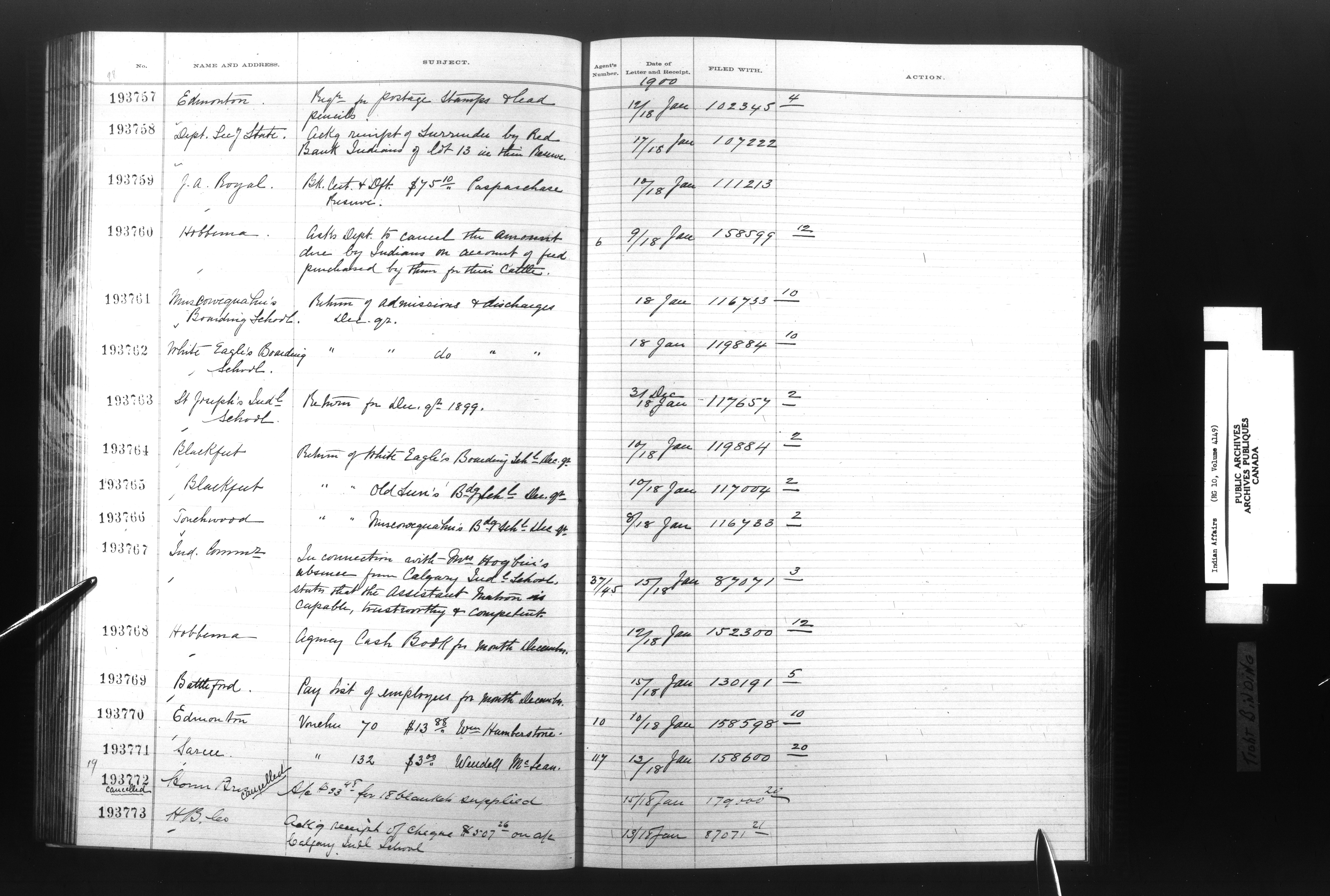 Department of Indian Affairs, Headquarters central registry system : registers, indices and indexed registers - 9032