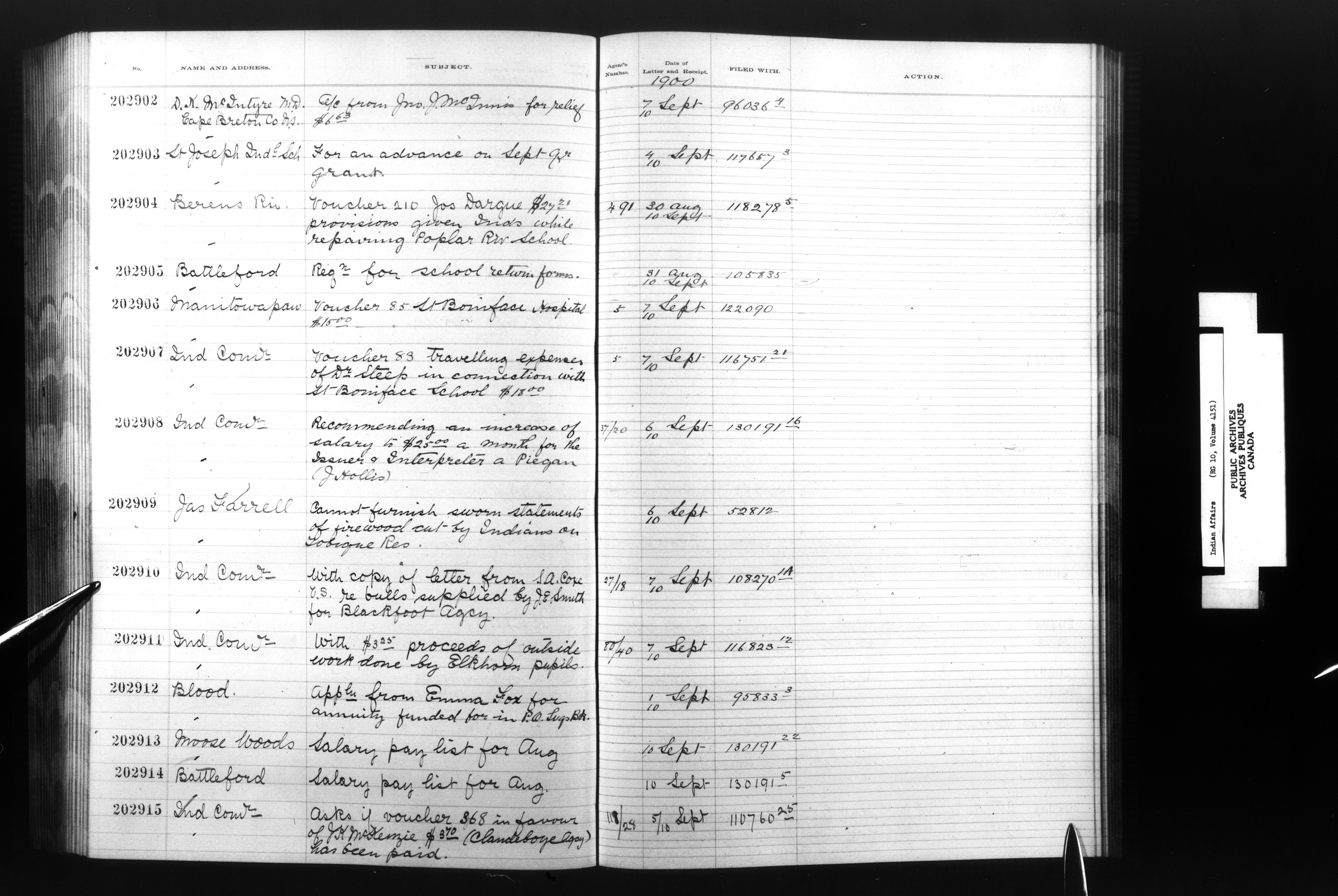 Department of Indian Affairs, Headquarters central registry system : registers, indices and indexed registers - 9033