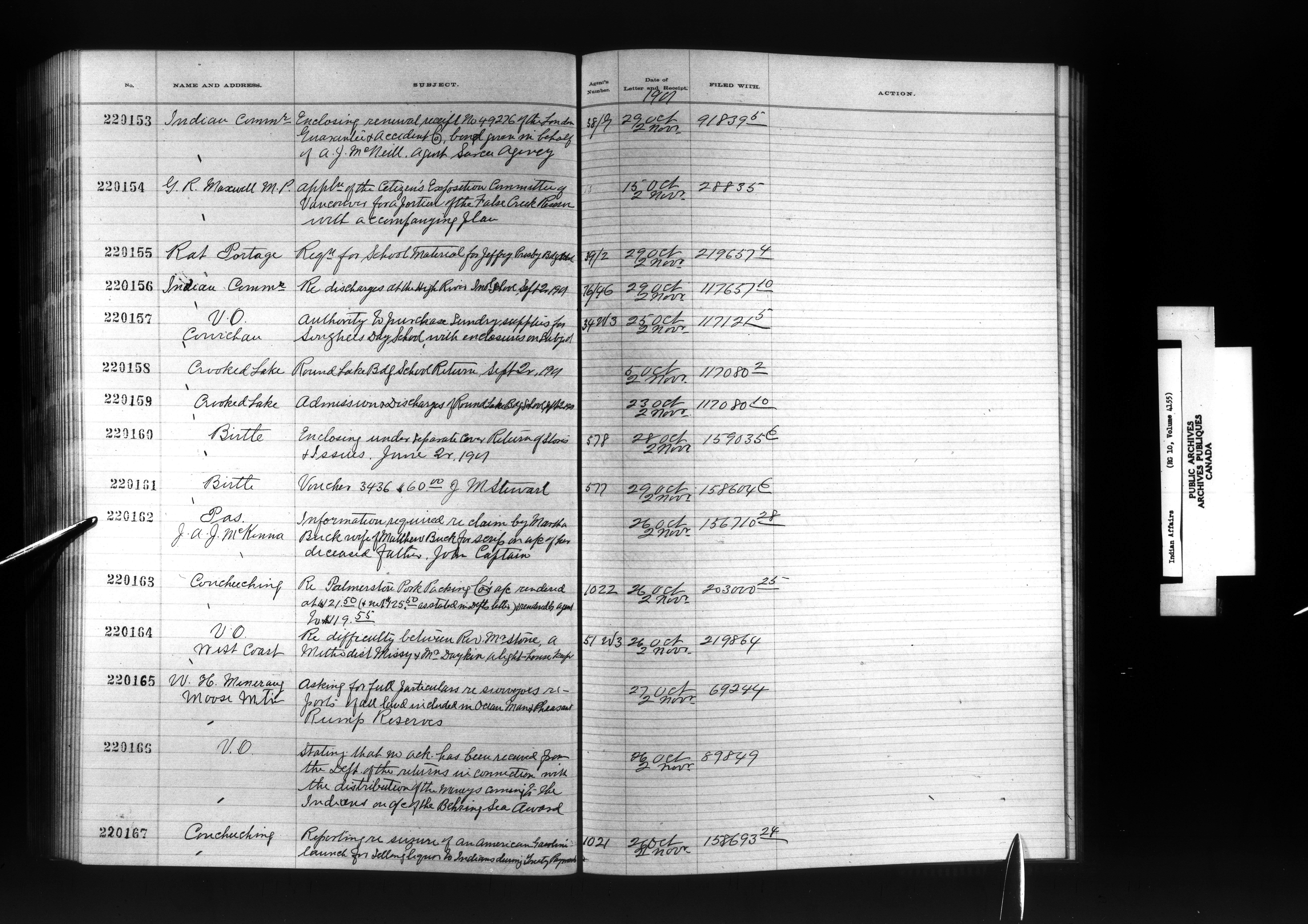 Department of Indian Affairs, Headquarters central registry system :registers, indices and indexed registers : C-9034