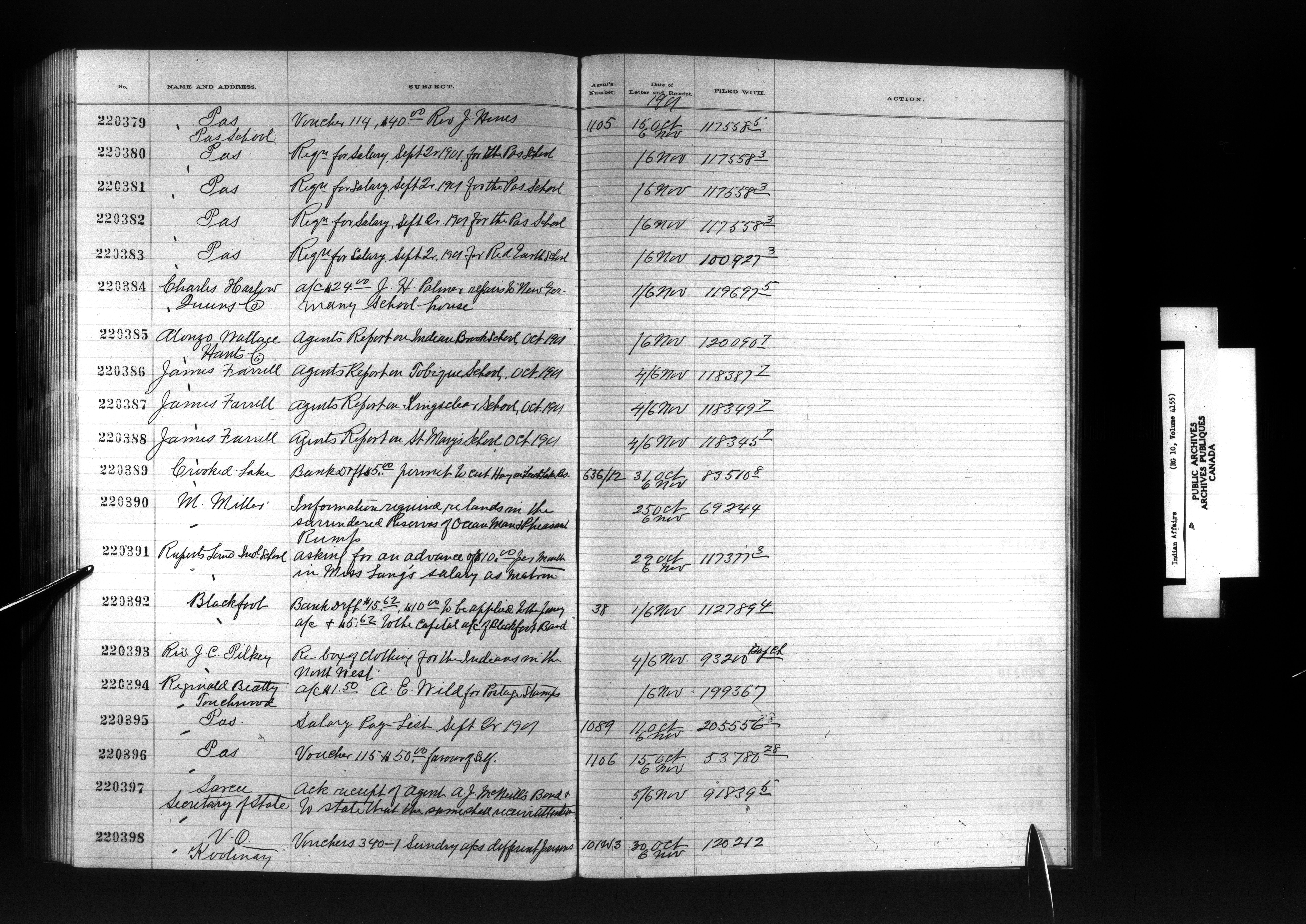 Department of Indian Affairs, Headquarters central registry system : registers, indices and indexed registers - 9034
