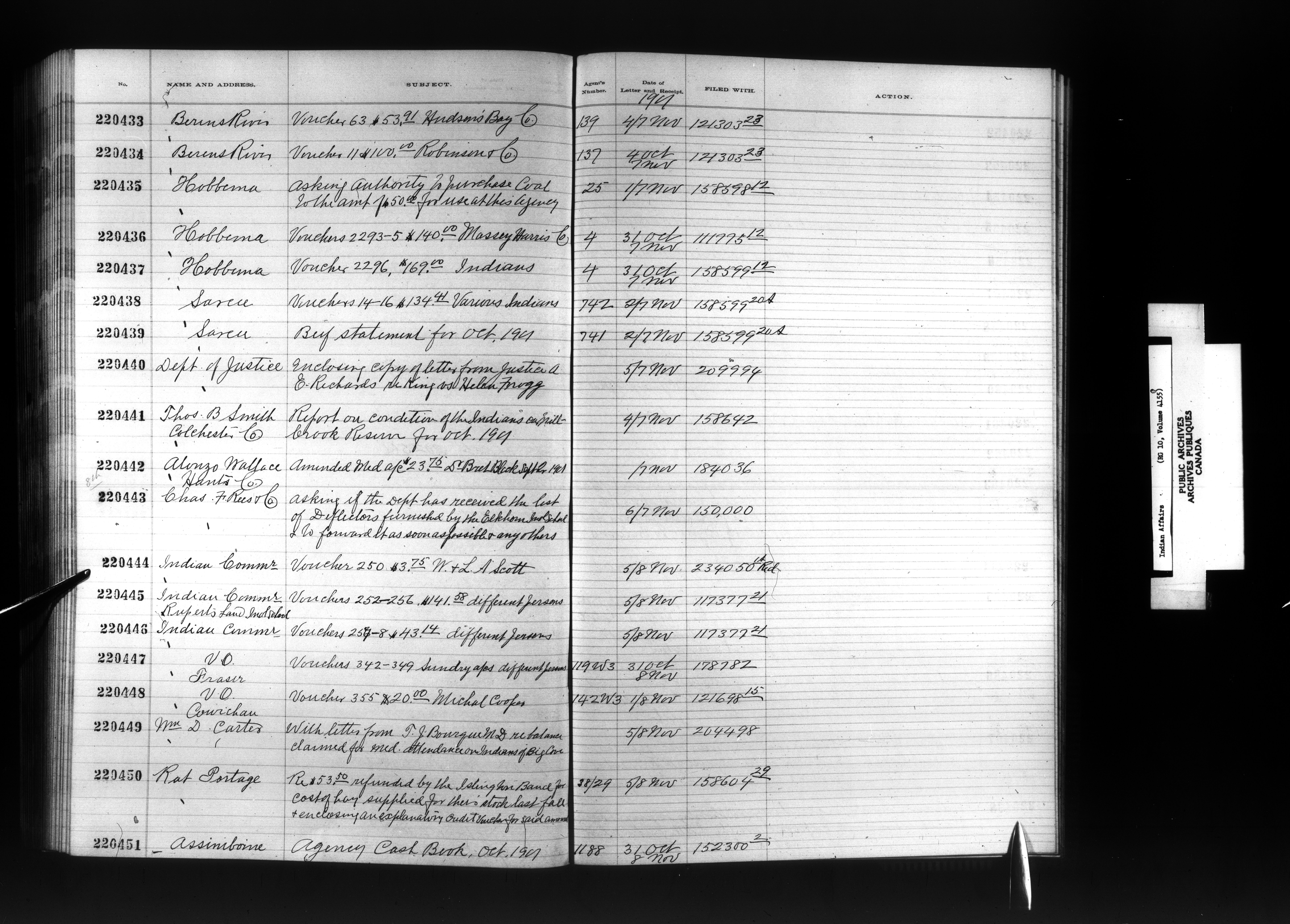 Department of Indian Affairs, Headquarters central registry system :registers, indices and indexed registers : C-9034