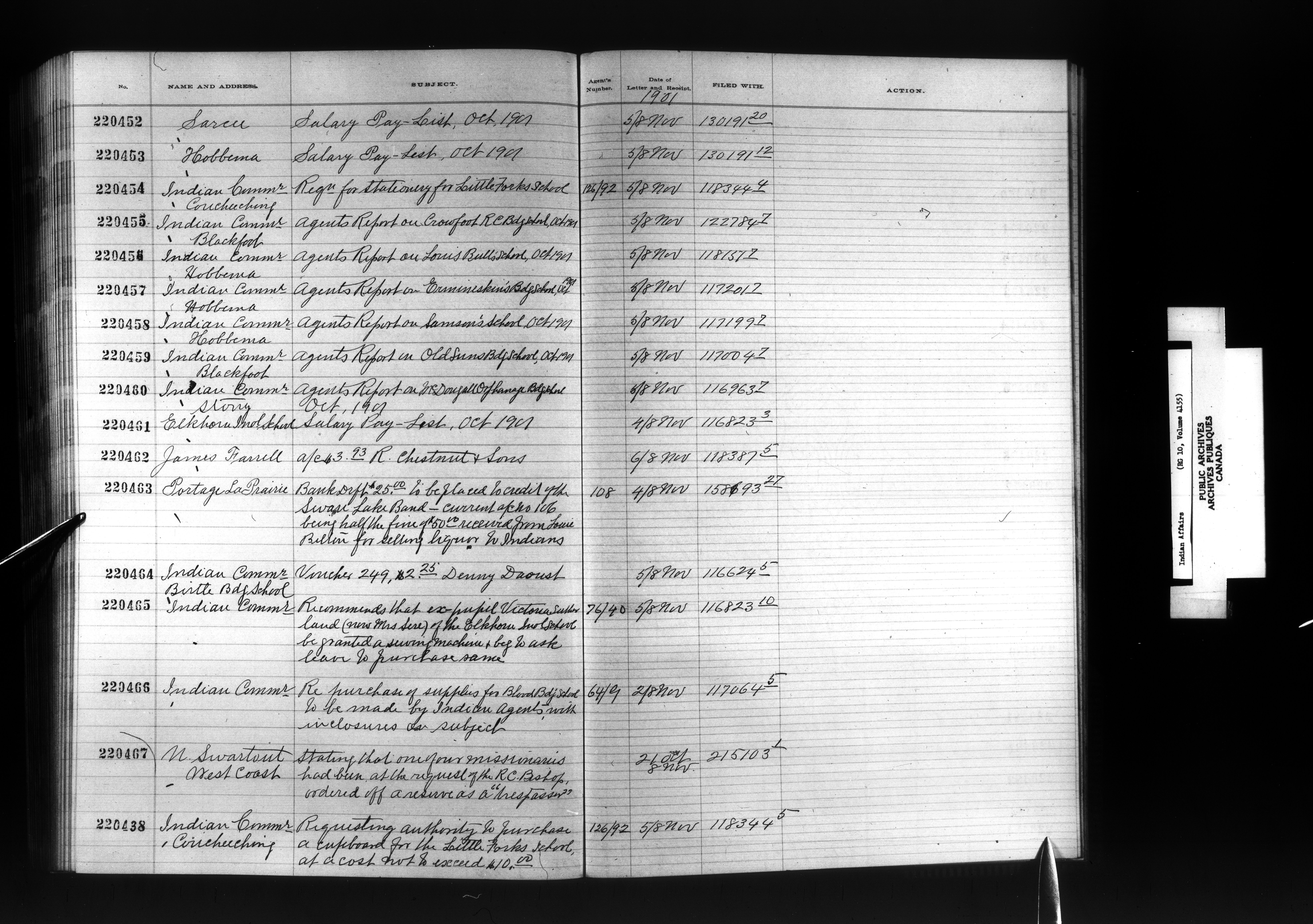 Department of Indian Affairs, Headquarters central registry system : registers, indices and indexed registers - 9034