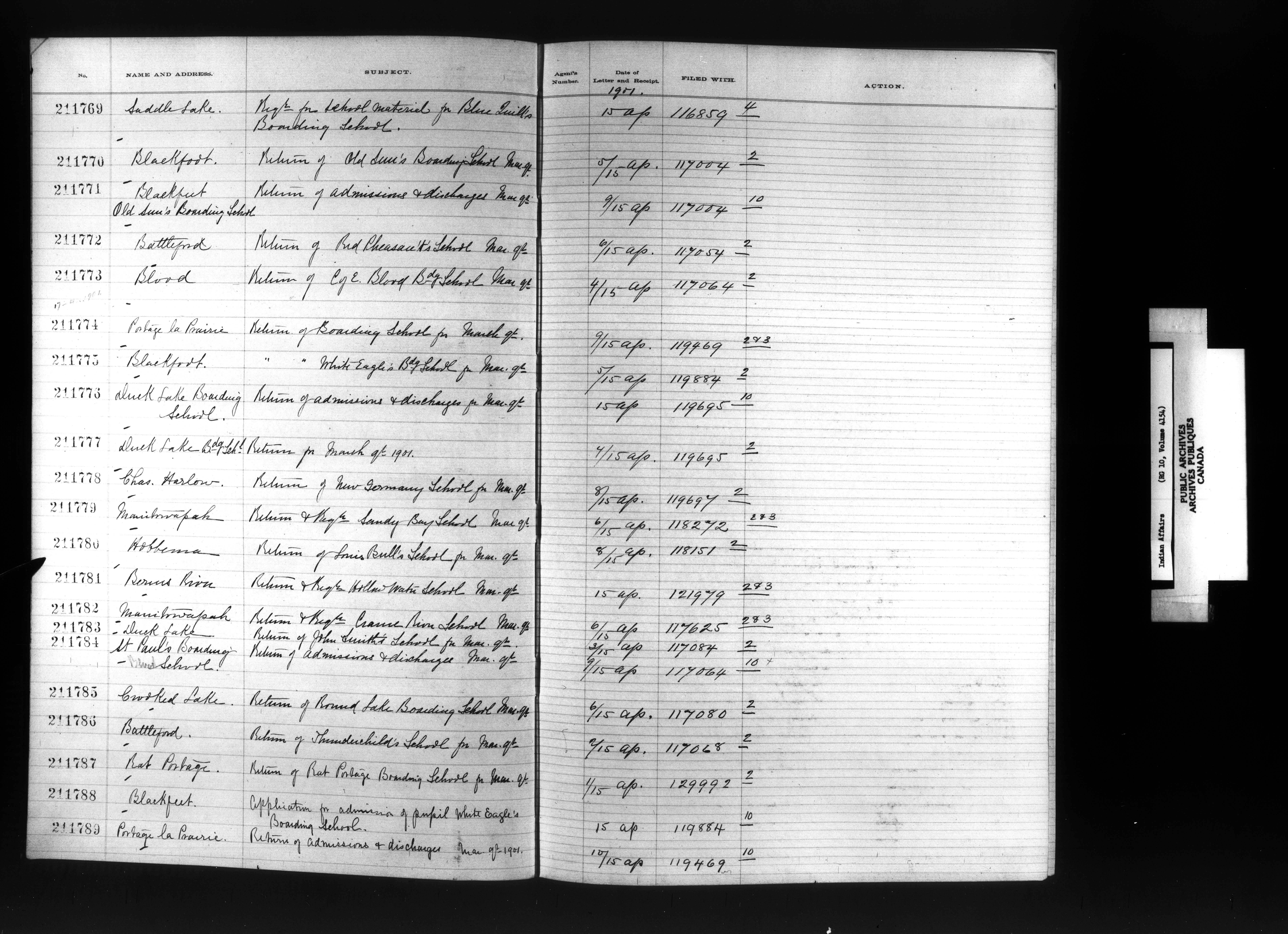 Department of Indian Affairs, Headquarters central registry system : registers, indices and indexed registers - 9034