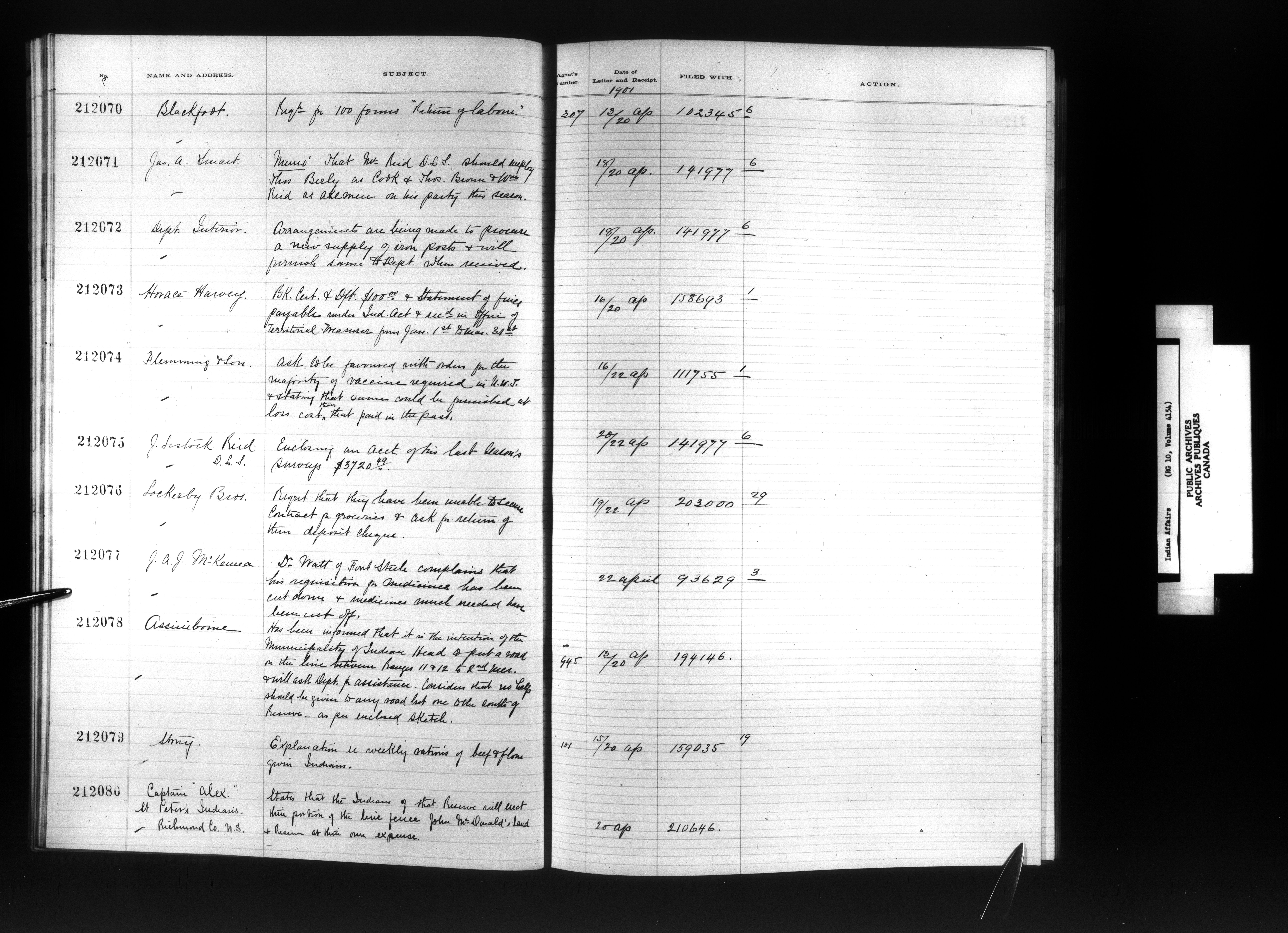 Department of Indian Affairs, Headquarters central registry system :registers, indices and indexed registers : C-9034