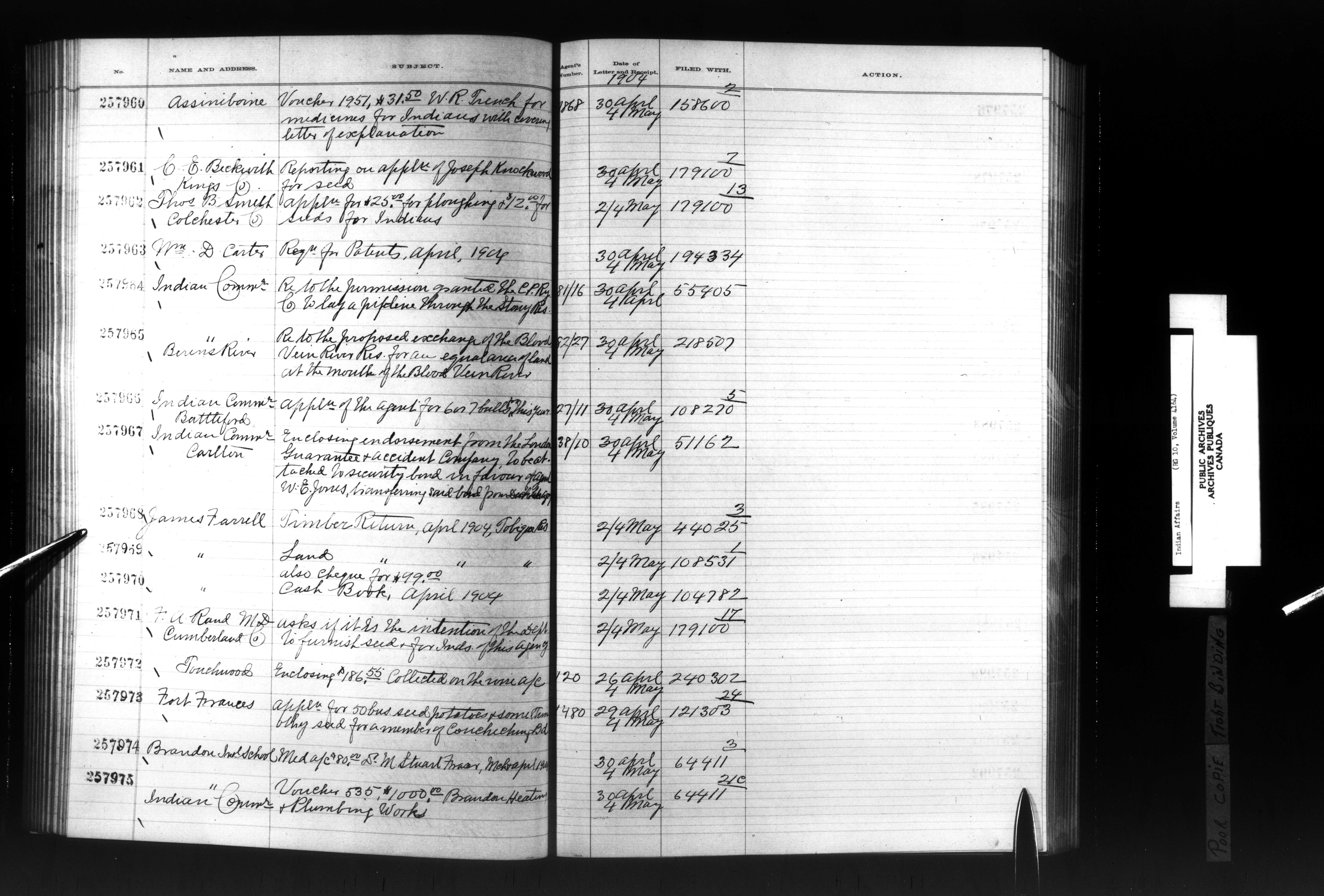 Department of Indian Affairs, Headquarters central registry system : registers, indices and indexed registers - 9038