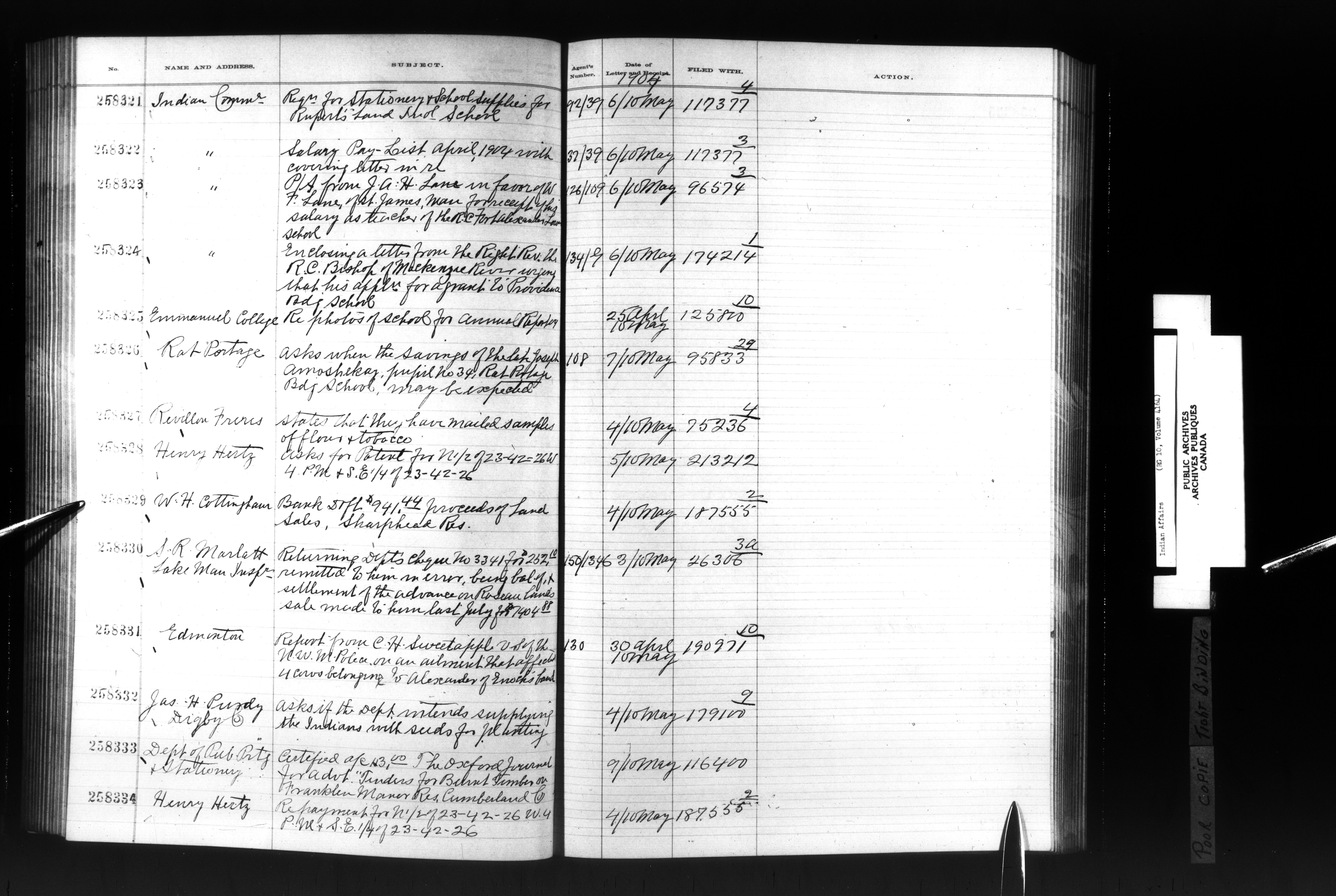 Department of Indian Affairs, Headquarters central registry system : registers, indices and indexed registers - 9038