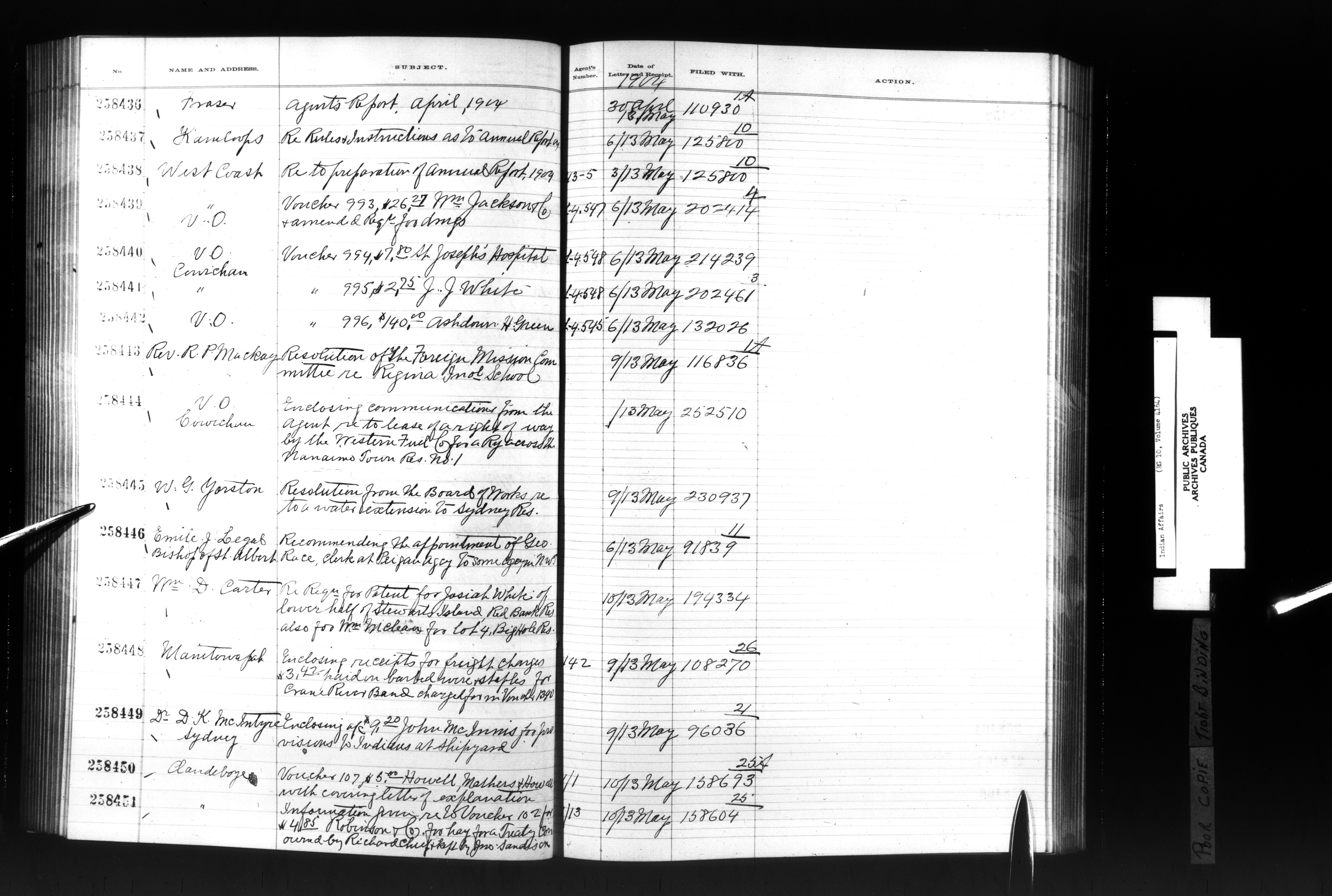Department of Indian Affairs, Headquarters central registry system : registers, indices and indexed registers - 9038