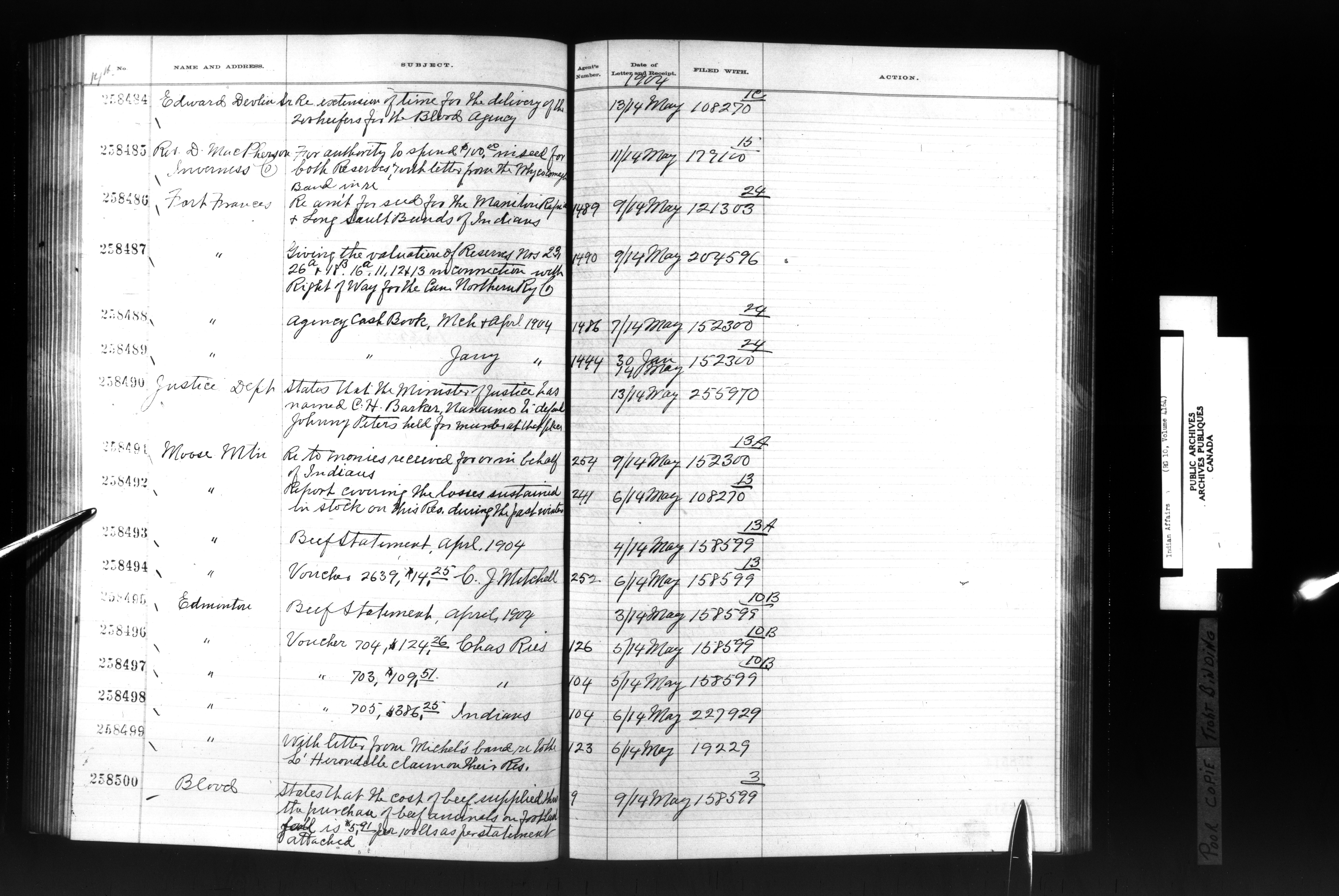 Department of Indian Affairs, Headquarters central registry system : registers, indices and indexed registers - 9038