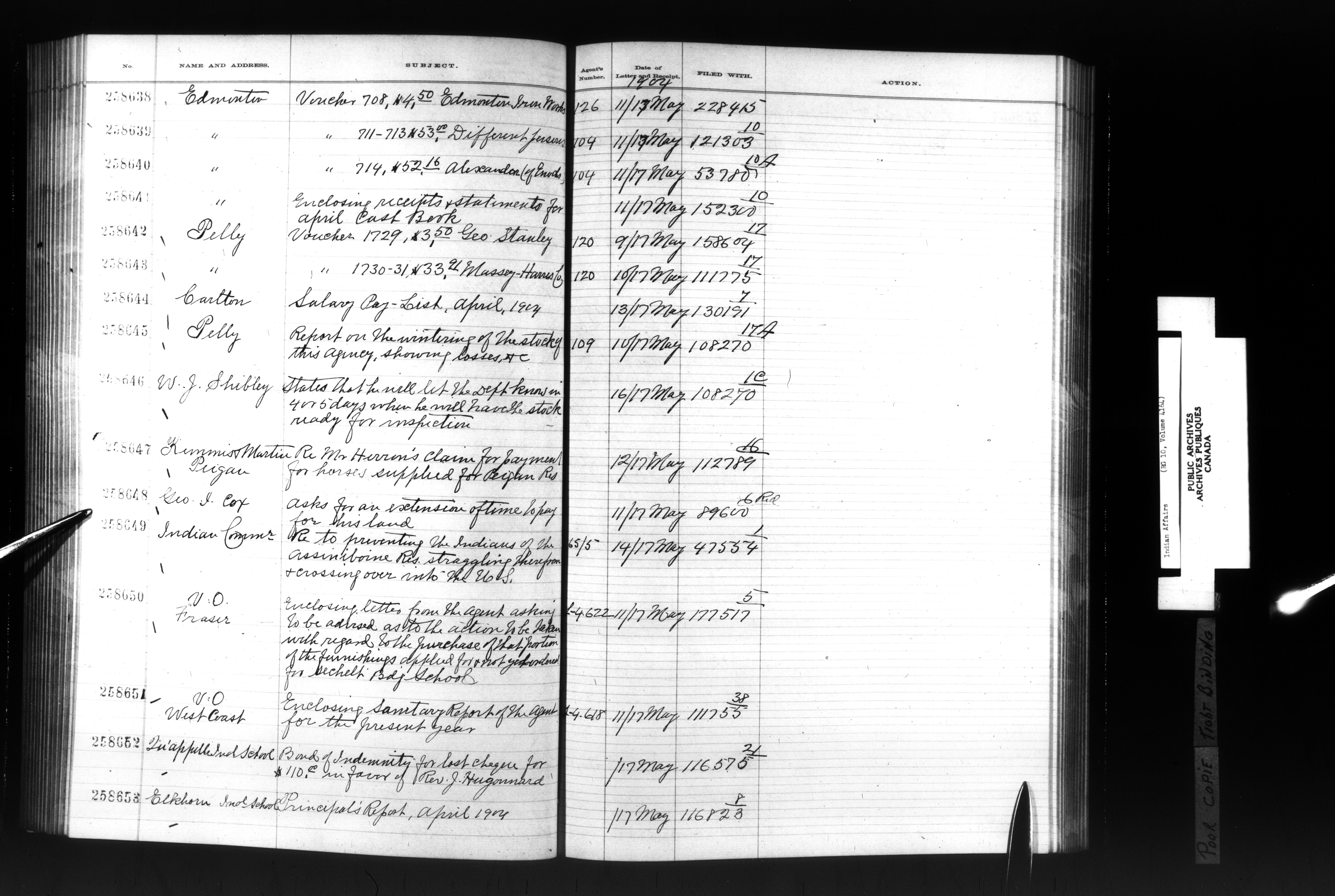 Department of Indian Affairs, Headquarters central registry system : registers, indices and indexed registers - 9038