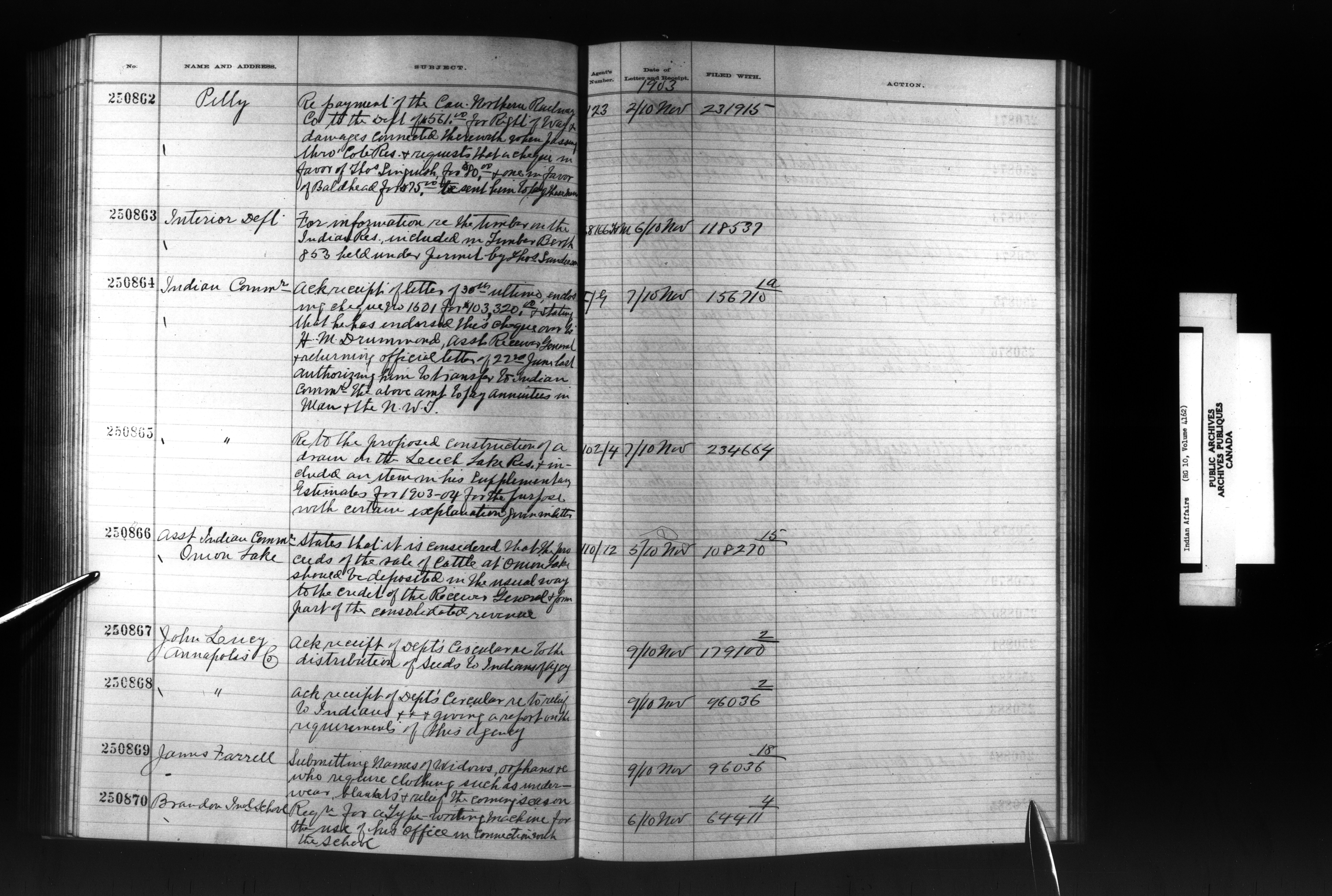 Department of Indian Affairs, Headquarters central registry system :registers, indices and indexed registers : C-9038