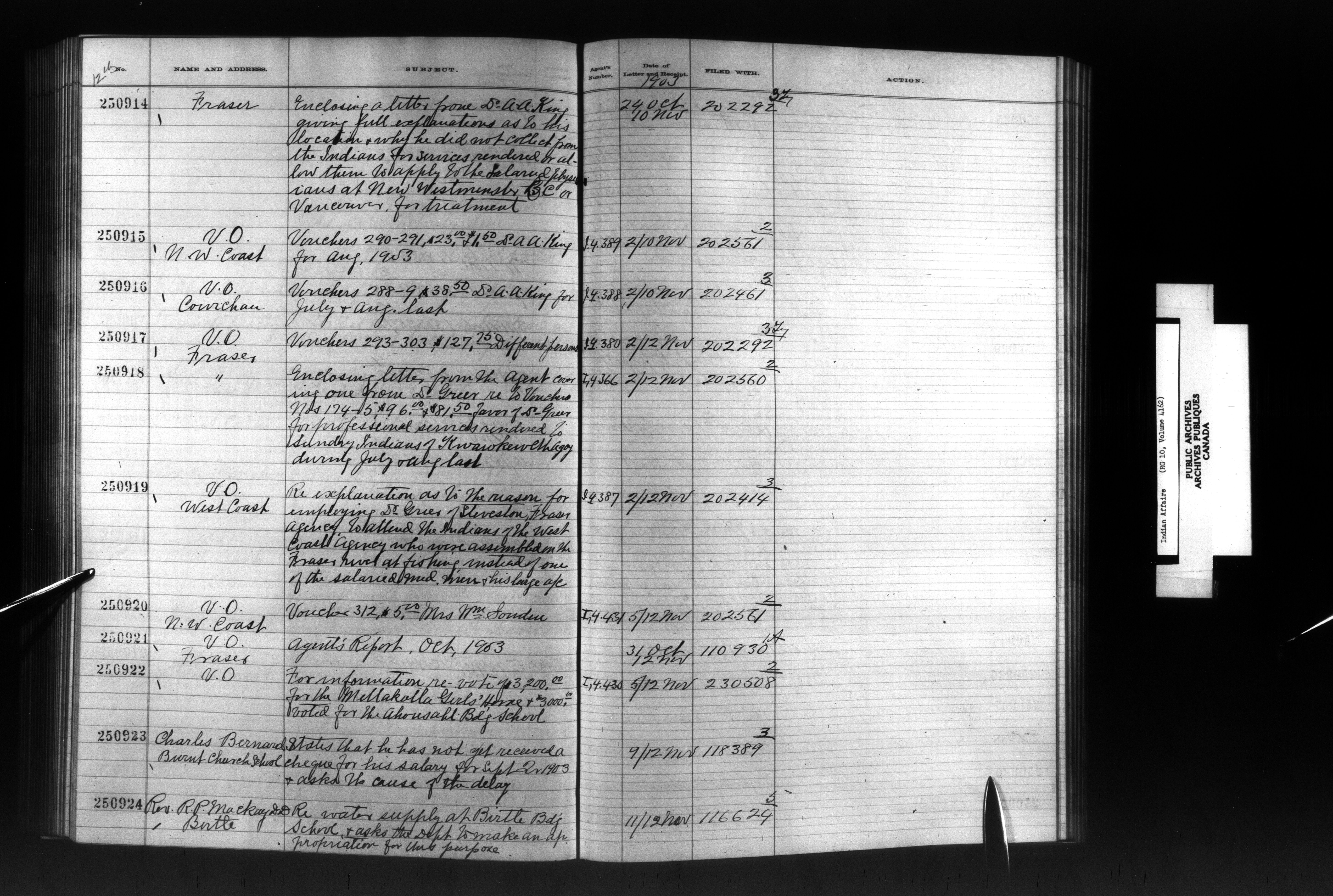Department of Indian Affairs, Headquarters central registry system : registers, indices and indexed registers - 9038