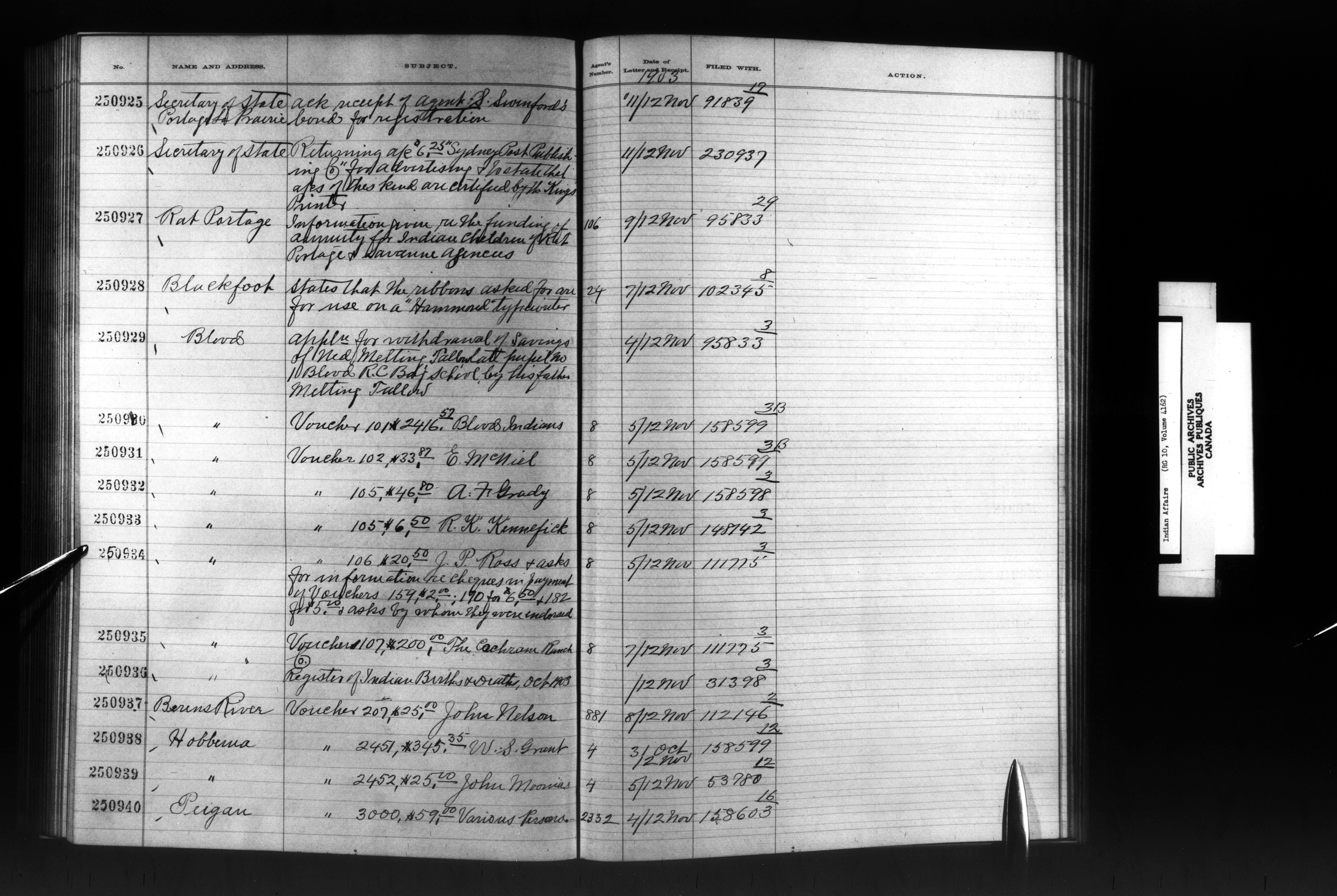 Department of Indian Affairs, Headquarters central registry system : registers, indices and indexed registers - 9038
