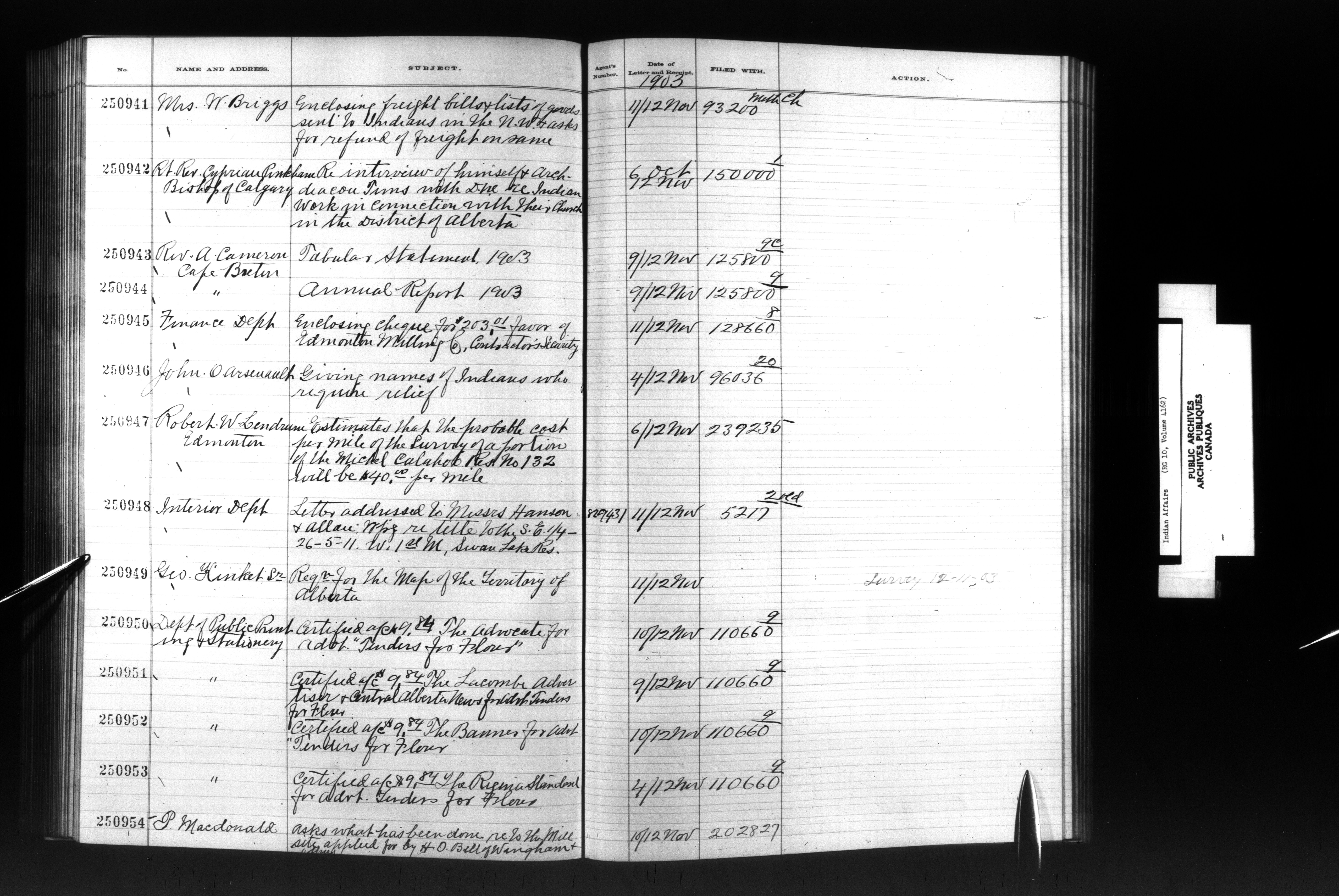 Department of Indian Affairs, Headquarters central registry system :registers, indices and indexed registers : C-9038