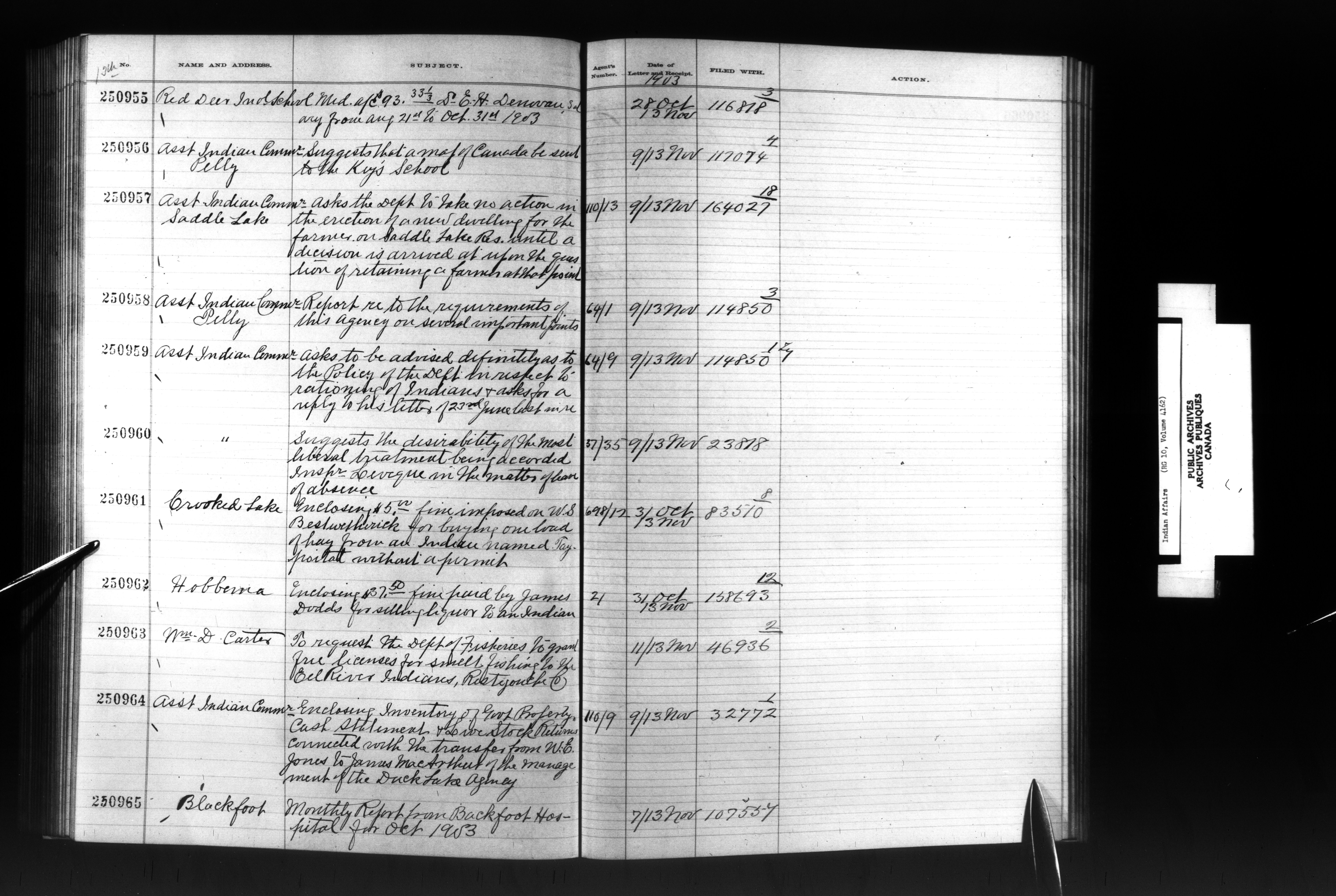 Department of Indian Affairs, Headquarters central registry system :registers, indices and indexed registers : C-9038