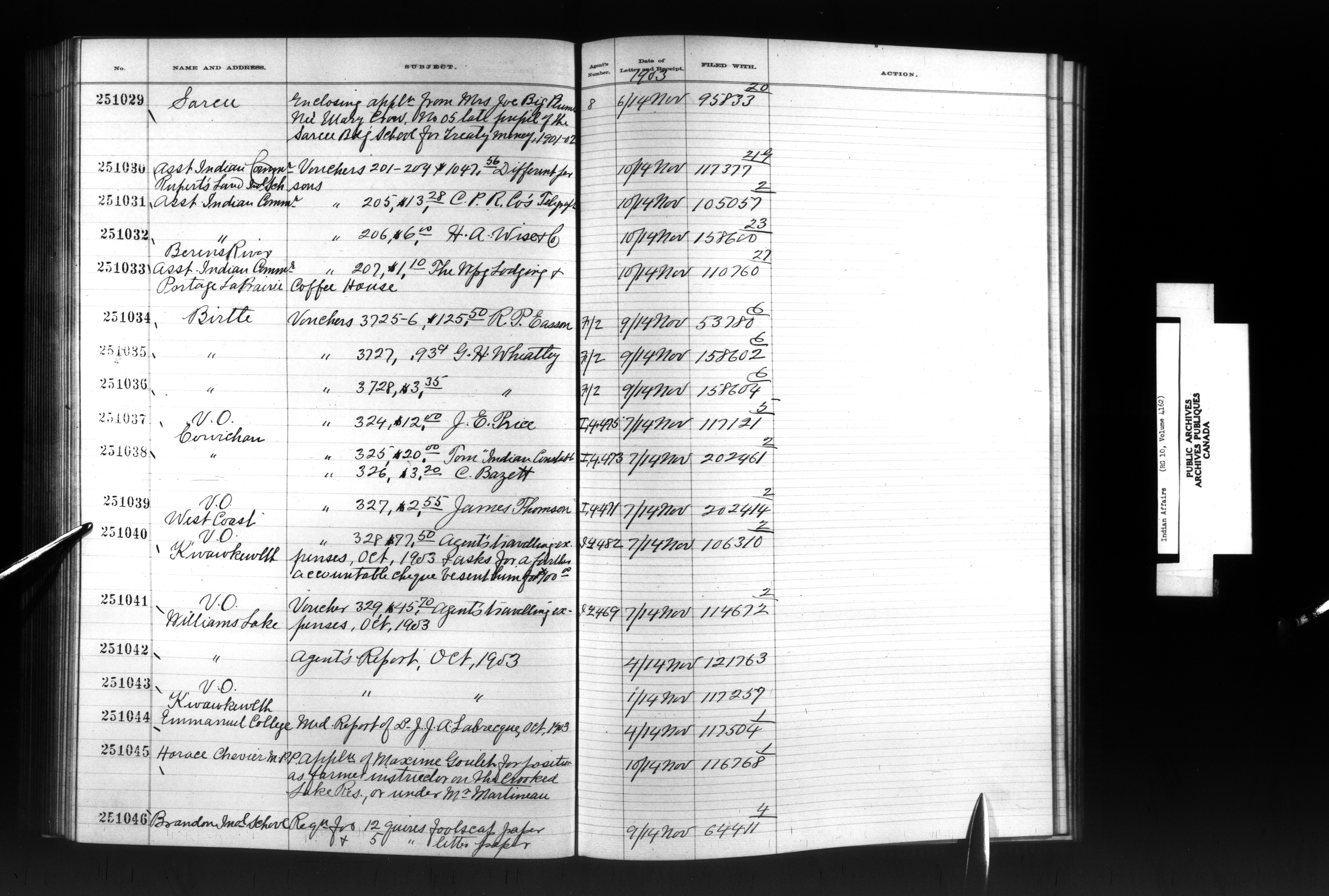 Department of Indian Affairs, Headquarters central registry system : registers, indices and indexed registers - 9038