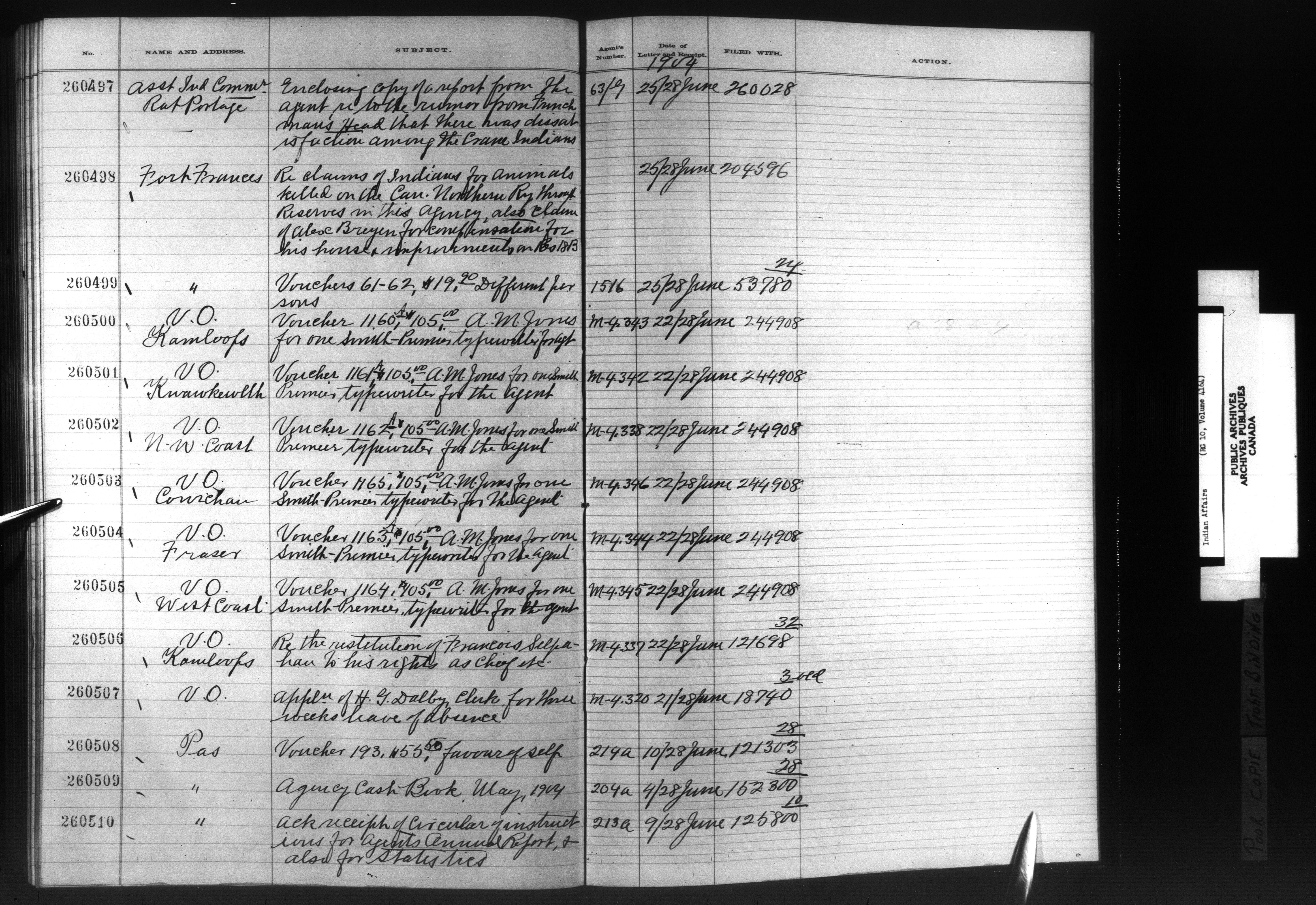 Department of Indian Affairs, Headquarters central registry system :registers, indices and indexed registers : C-9039