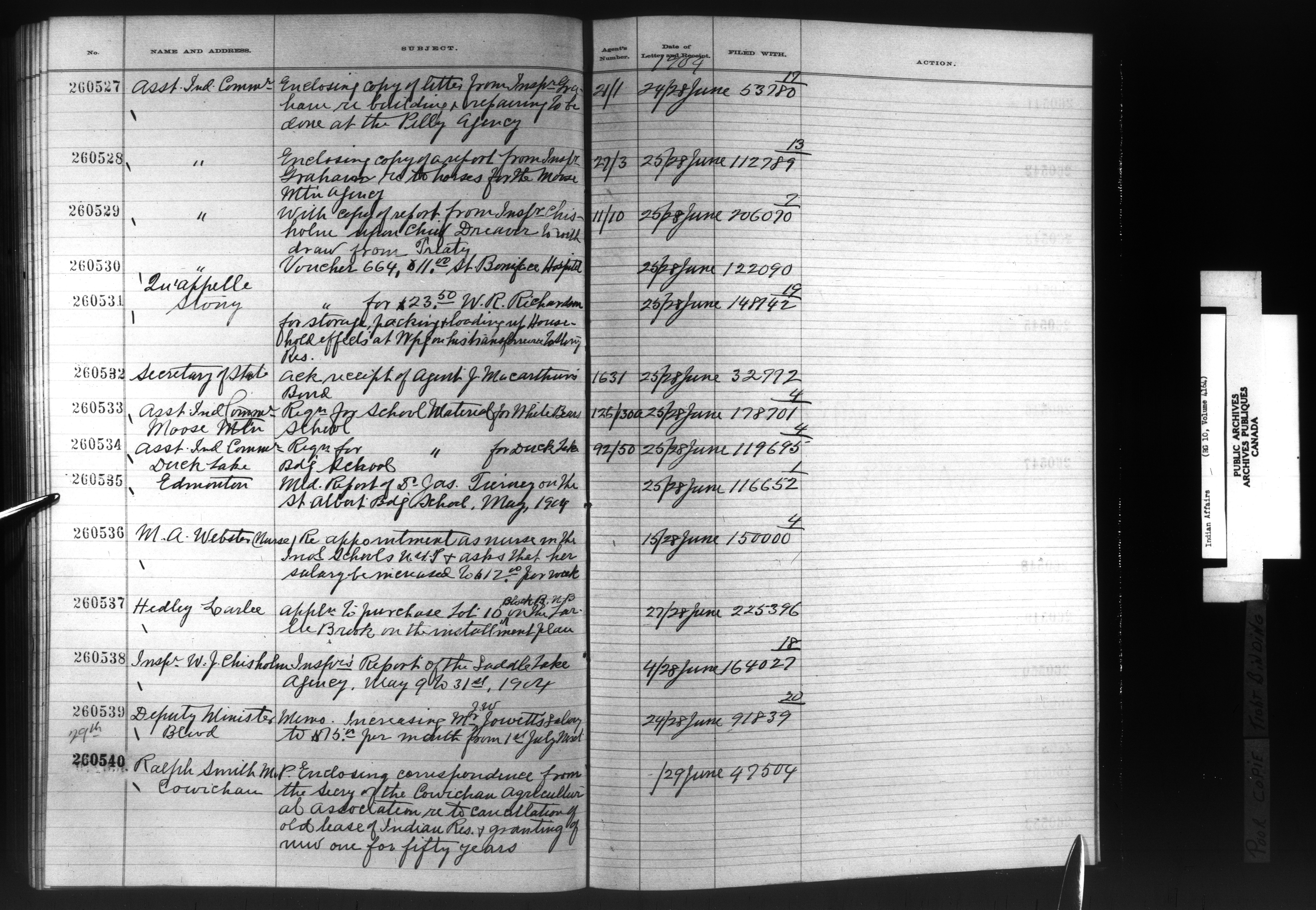 Department of Indian Affairs, Headquarters central registry system :registers, indices and indexed registers : C-9039
