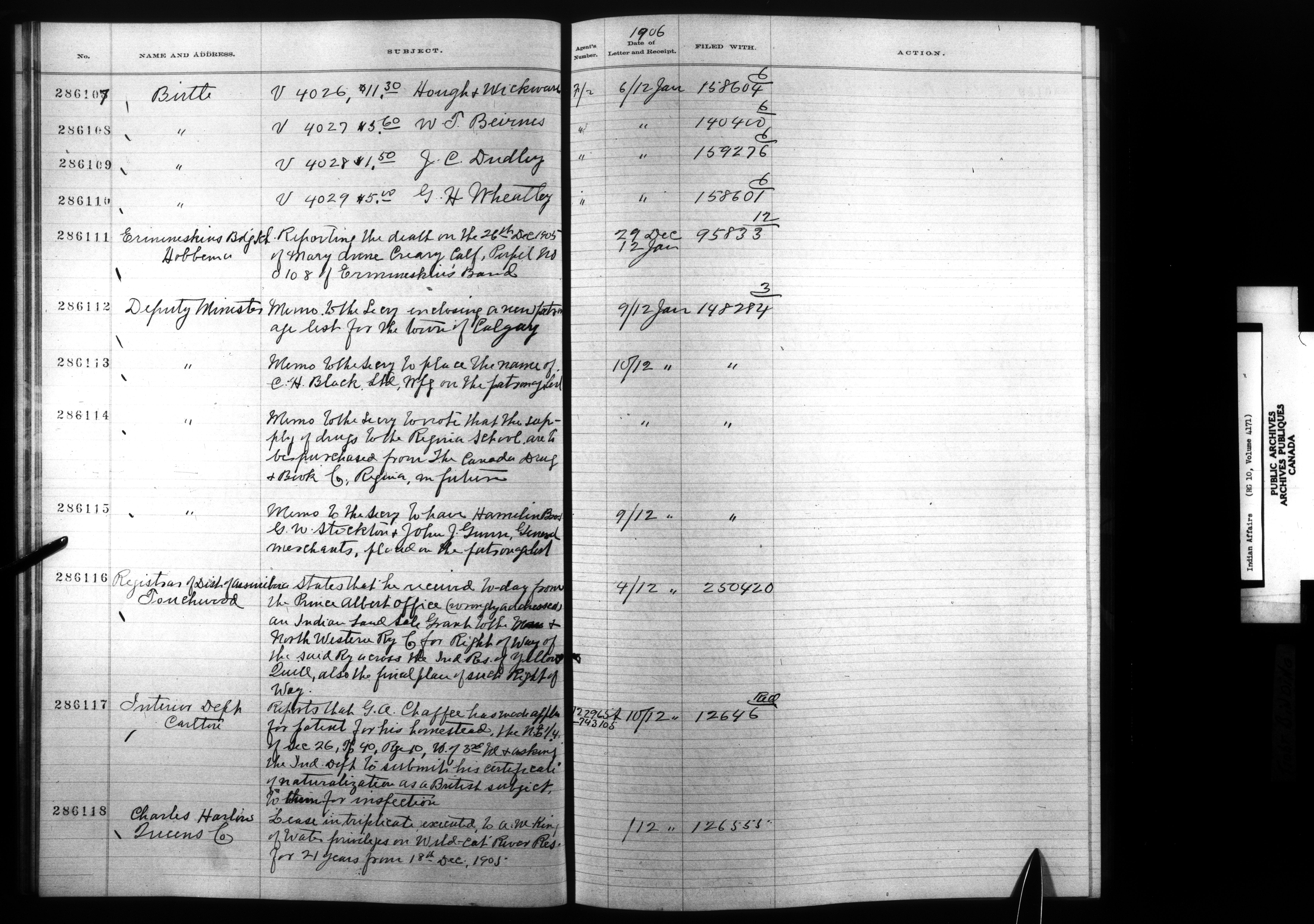 Department of Indian Affairs, Headquarters central registry system :registers, indices and indexed registers : C-9041